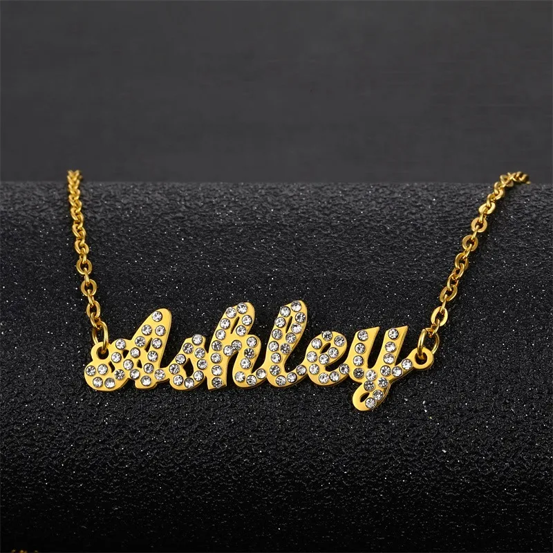 Ожерелье из нержавеющей стали с фианитами с именем на заказ, ожерел...