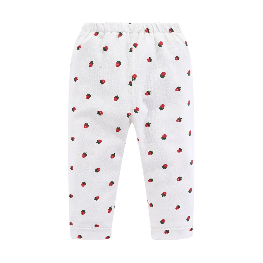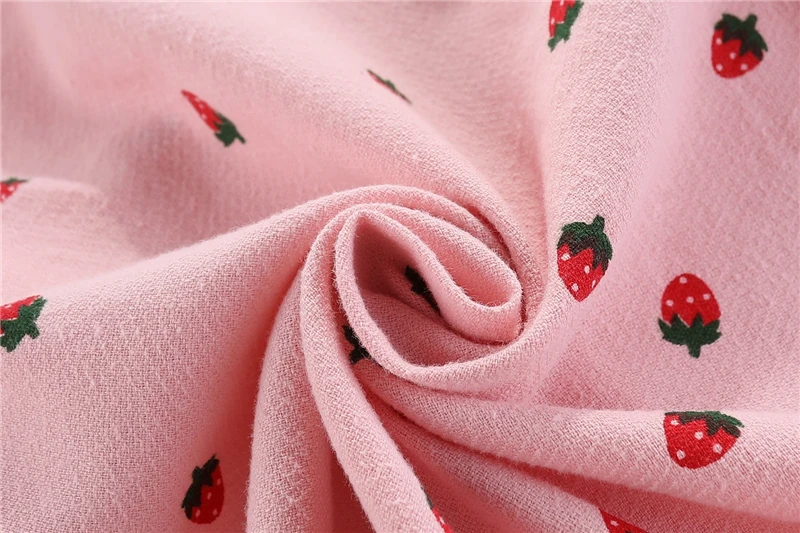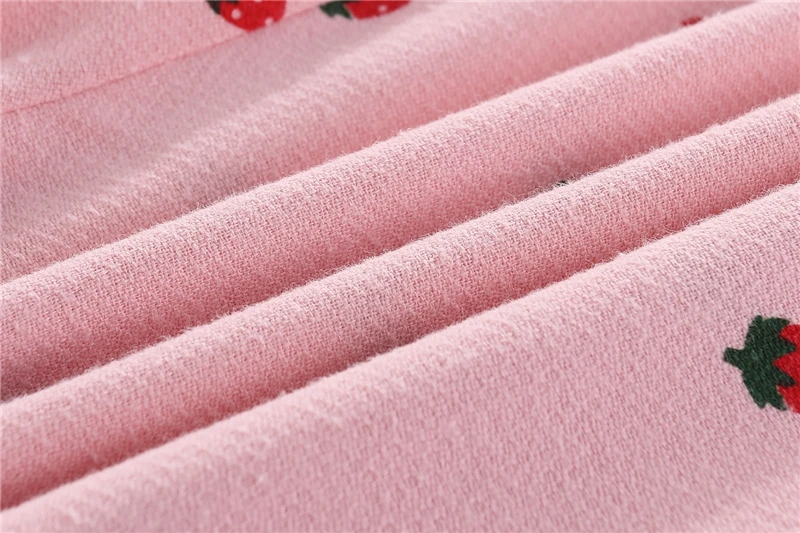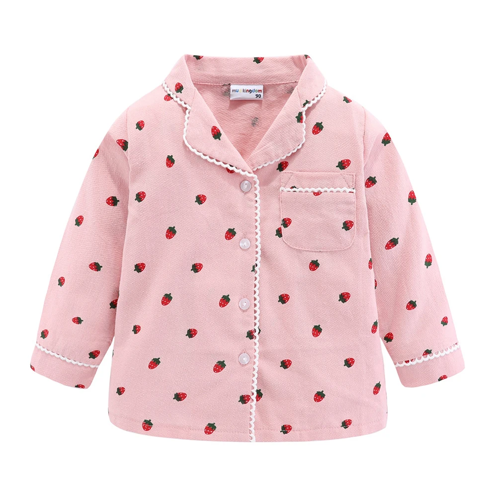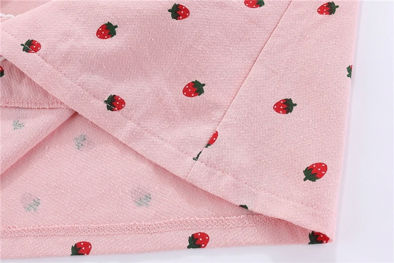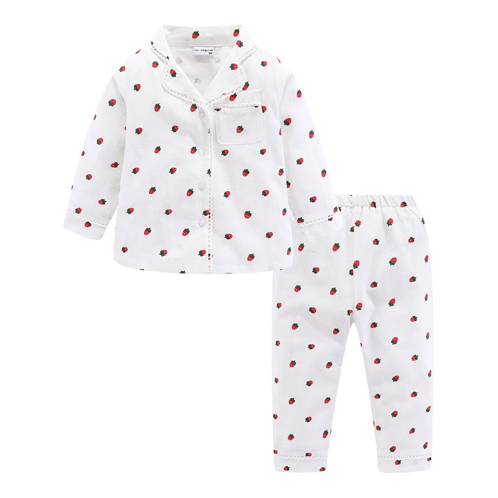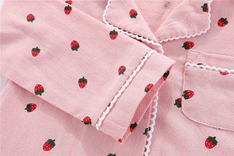 Пижама для девочек, с клубничным узором, кружевной воротник, длинный рукав, хлопковая, детская одежда для дома