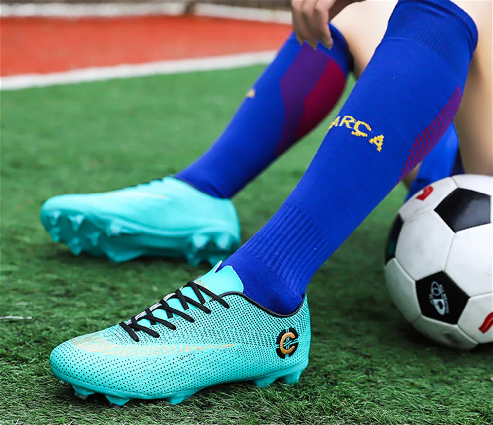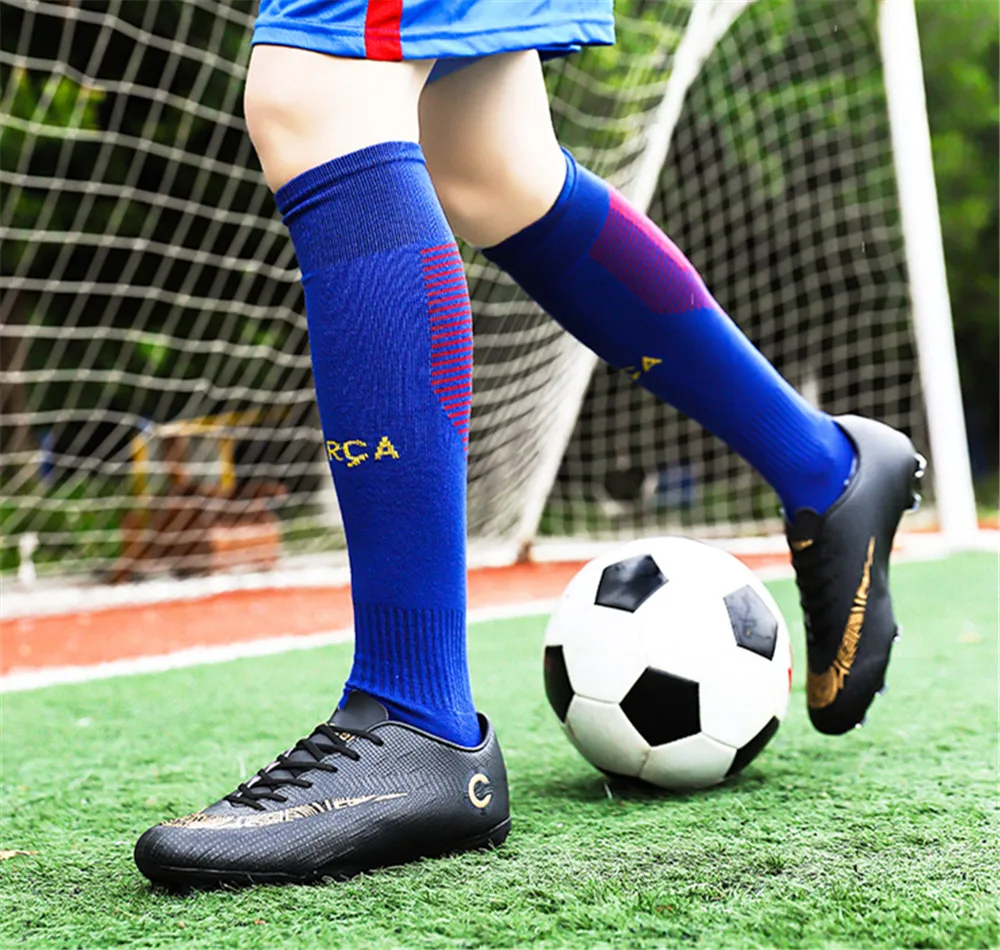 Мужские футбольные бутсы, футбольная обувь FGTF, Детские уличные футбольные бутсы с длинными шипами, кроссовки для тренировок на лодыжке, газон, большие размеры 33-48