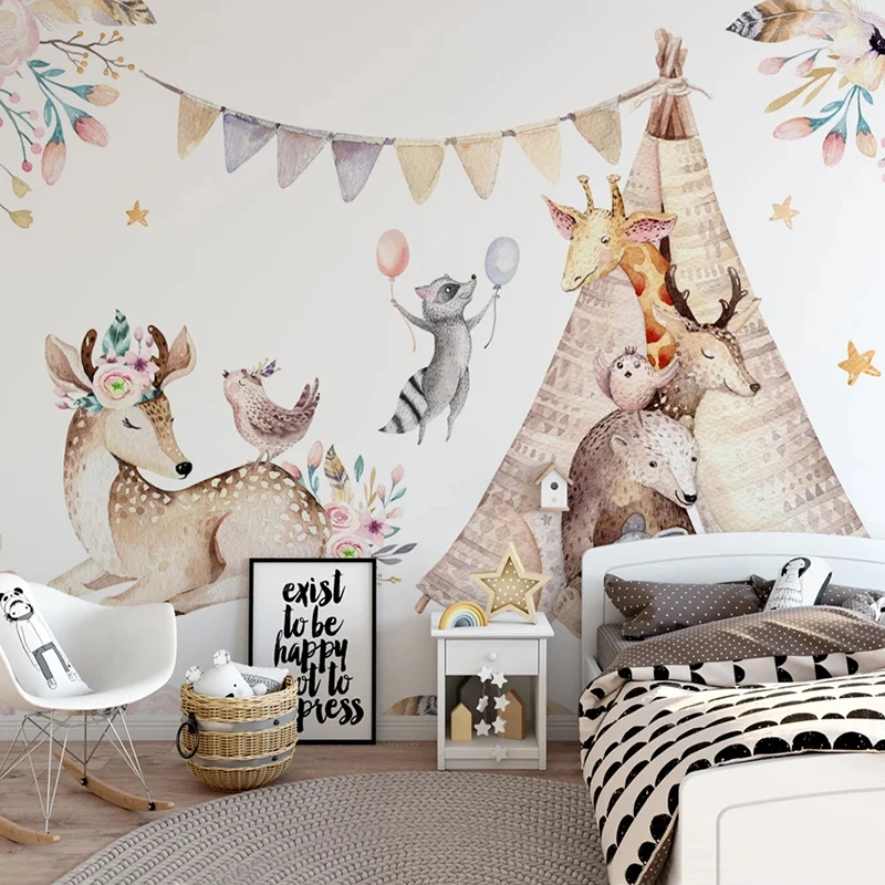 Пользовательские 3D фотообои ручная роспись милые животные цветы Лось Жираф детский сад мальчики спальня детская комната украшение Фреска