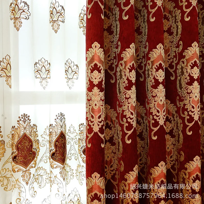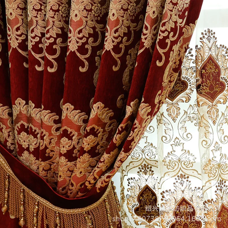 Занавески на заказ, Роскошные, для гостиной, благородные, европейские, вышитые, красные, толстые шенилловые, затемняющие шторы, тюлевые занавески B625