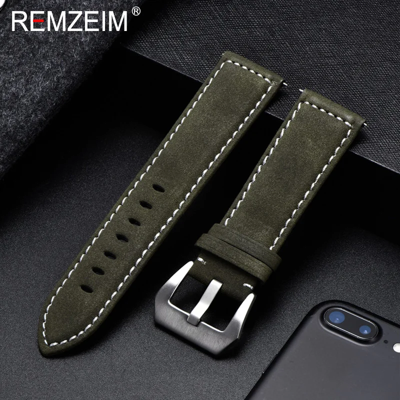 Ремешок для часов REMZEIM, кожаный, коричневый, 18202224 мм
