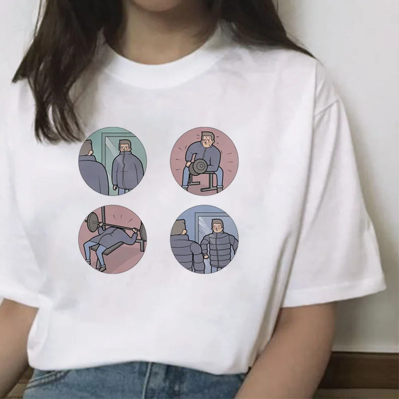 Футболка женская повседневная с забавным мультяшным принтом, Топ в стиле Харадзюку, женский топ с круглым вырезом
