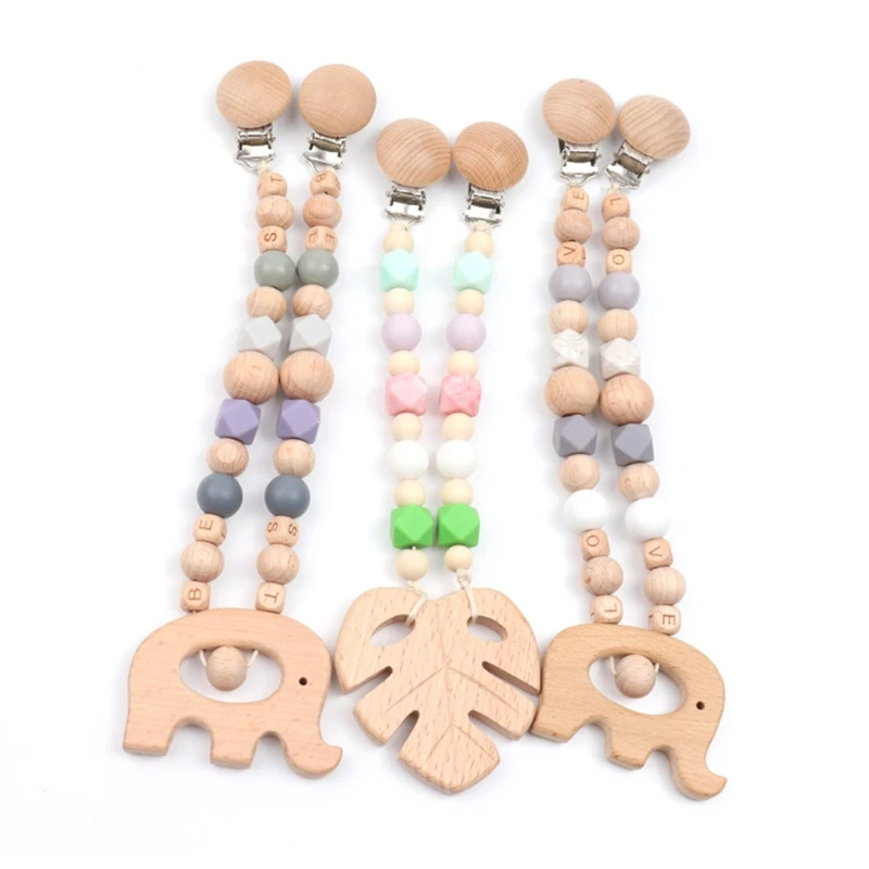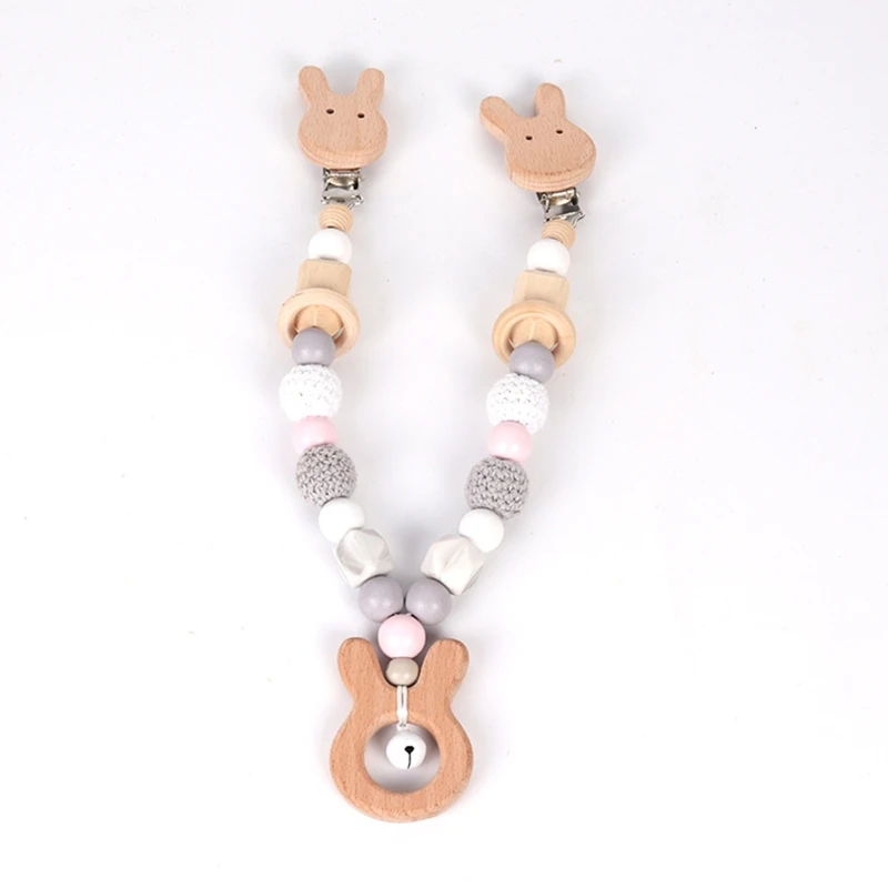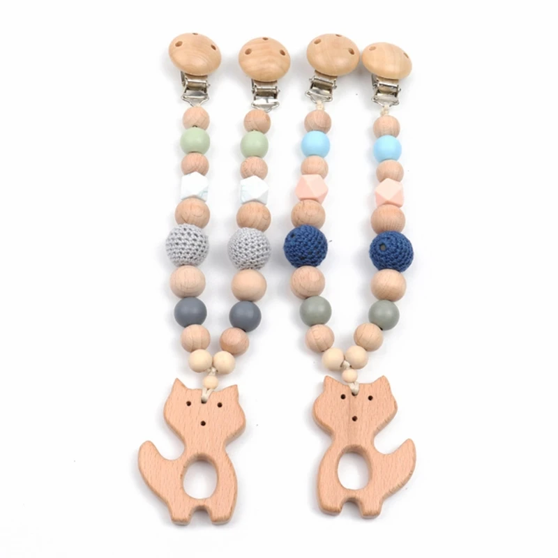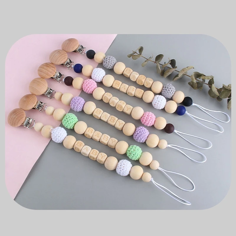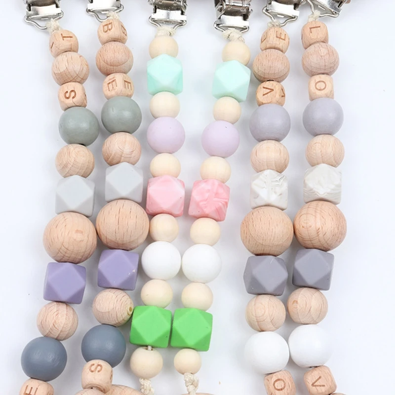 Детская Соска-клипса с силиконовыми бусинами, деревянный детский прорезыватель, соска-цепочка, зажим для игрового зала, подвеска-погремушка, держатель для соски, детская игрушка