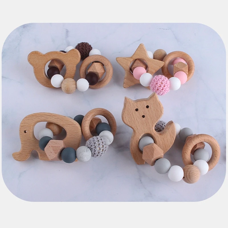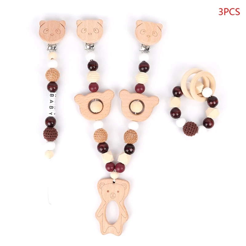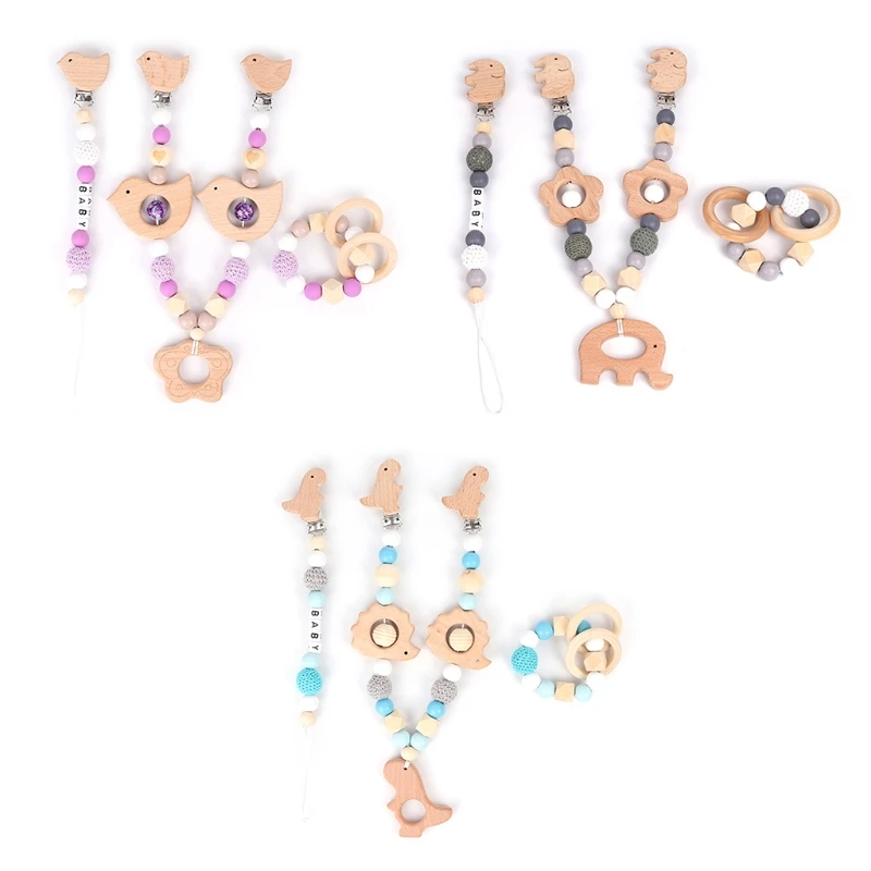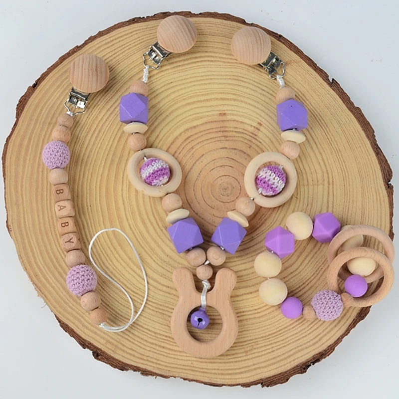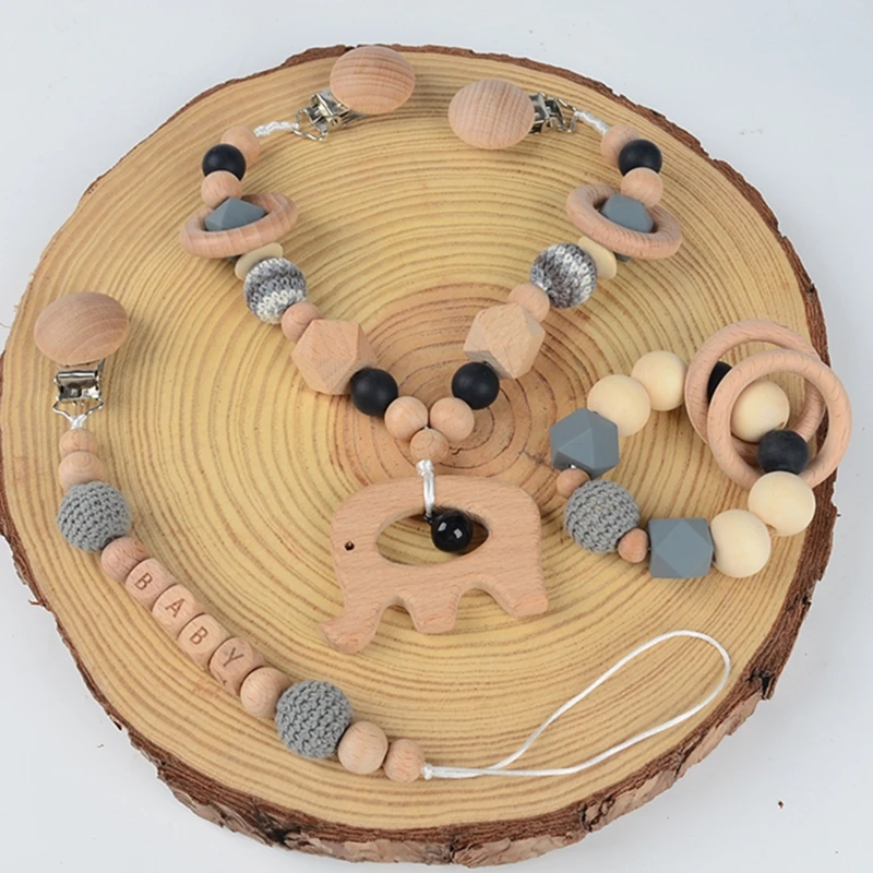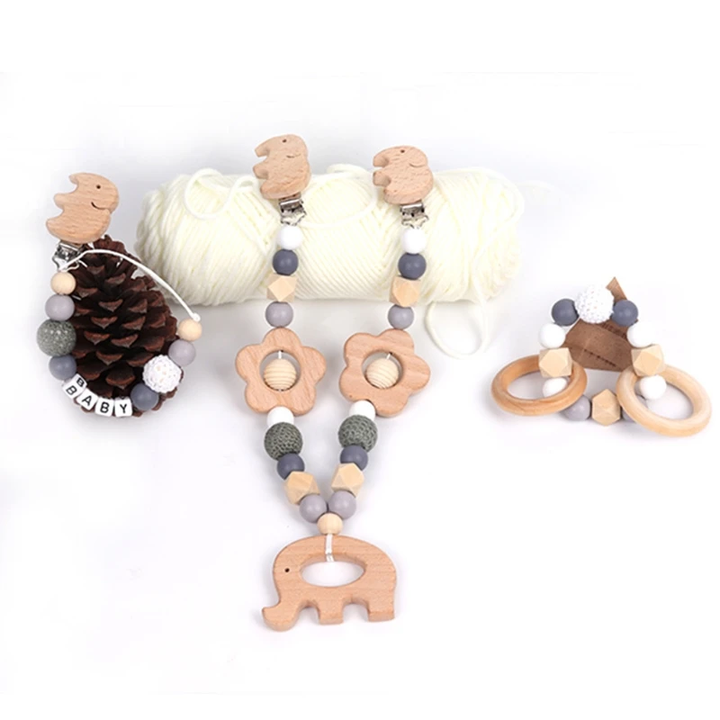 Детская Соска-клипса с силиконовыми бусинами, деревянный детский прорезыватель, соска-цепочка, зажим для игрового зала, подвеска-погремушка, держатель для соски, детская игрушка