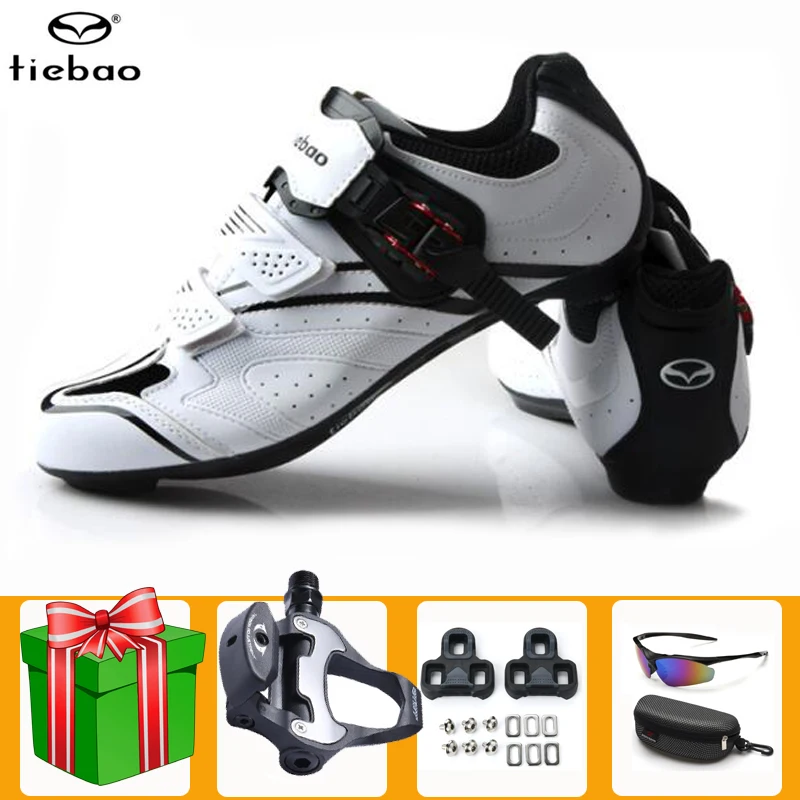 Обувь для шоссейного велоспорта Tiebao, сверхлегкая, самоблокирующаяся, белая, профессиональная шипа, SPD-SL, педаль, гоночный велосипед, мужские и женские кроссовки