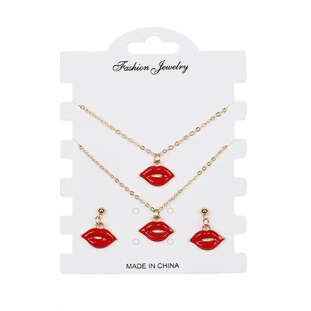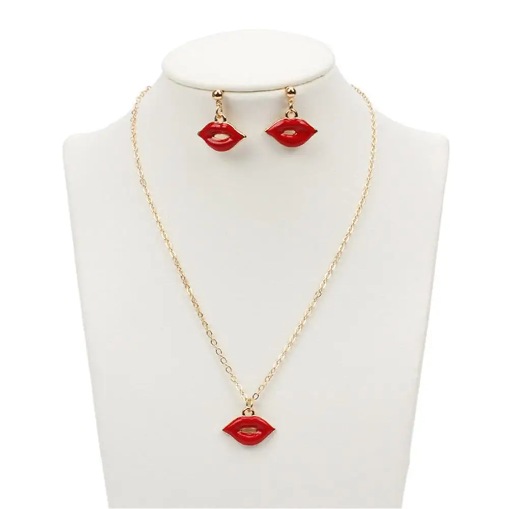Ожерелье с подвеской в виде красных губ, поцелуй в рот, браслет в форме губ, серьги-гвоздики, набор для женщин, браслет для девочек, модные украшения