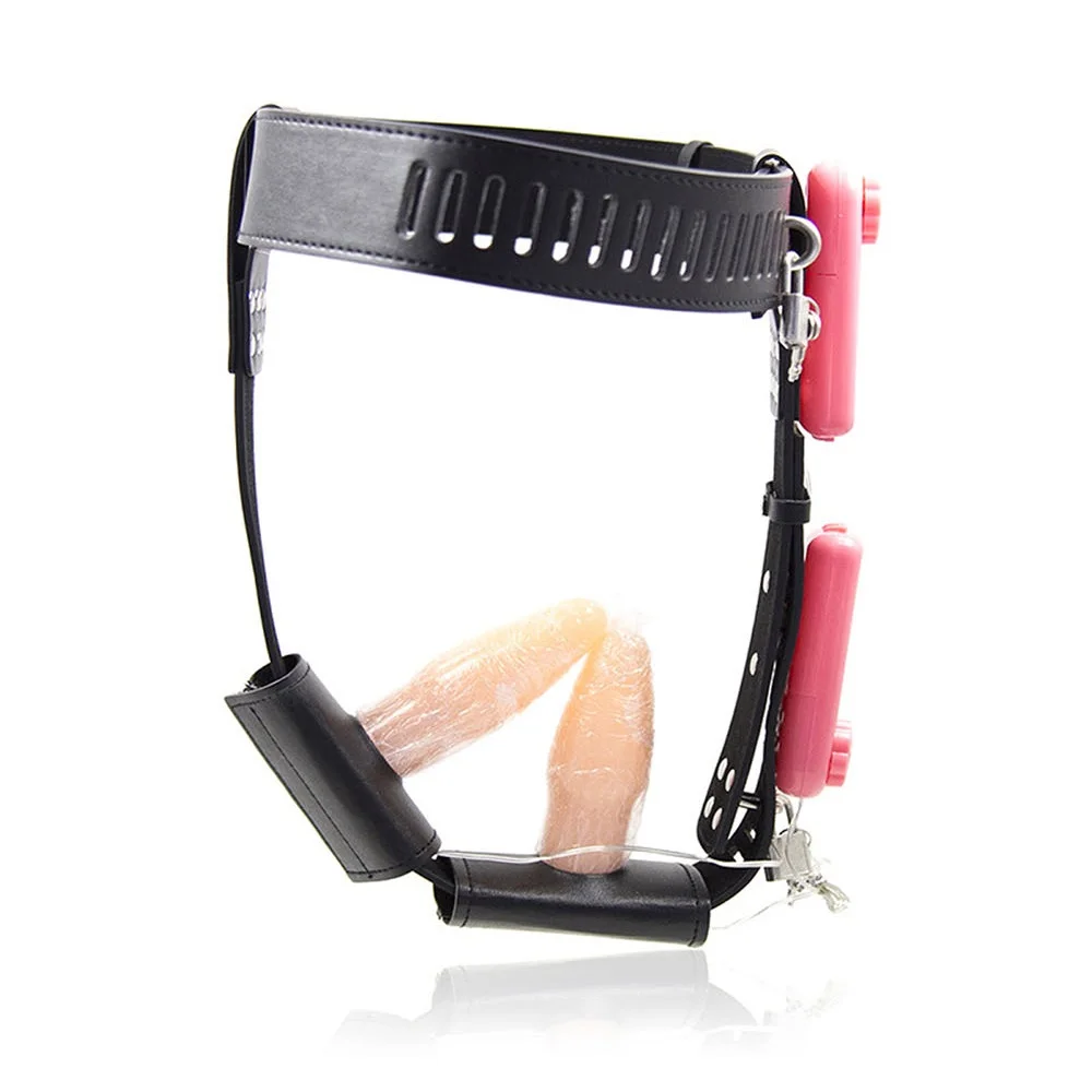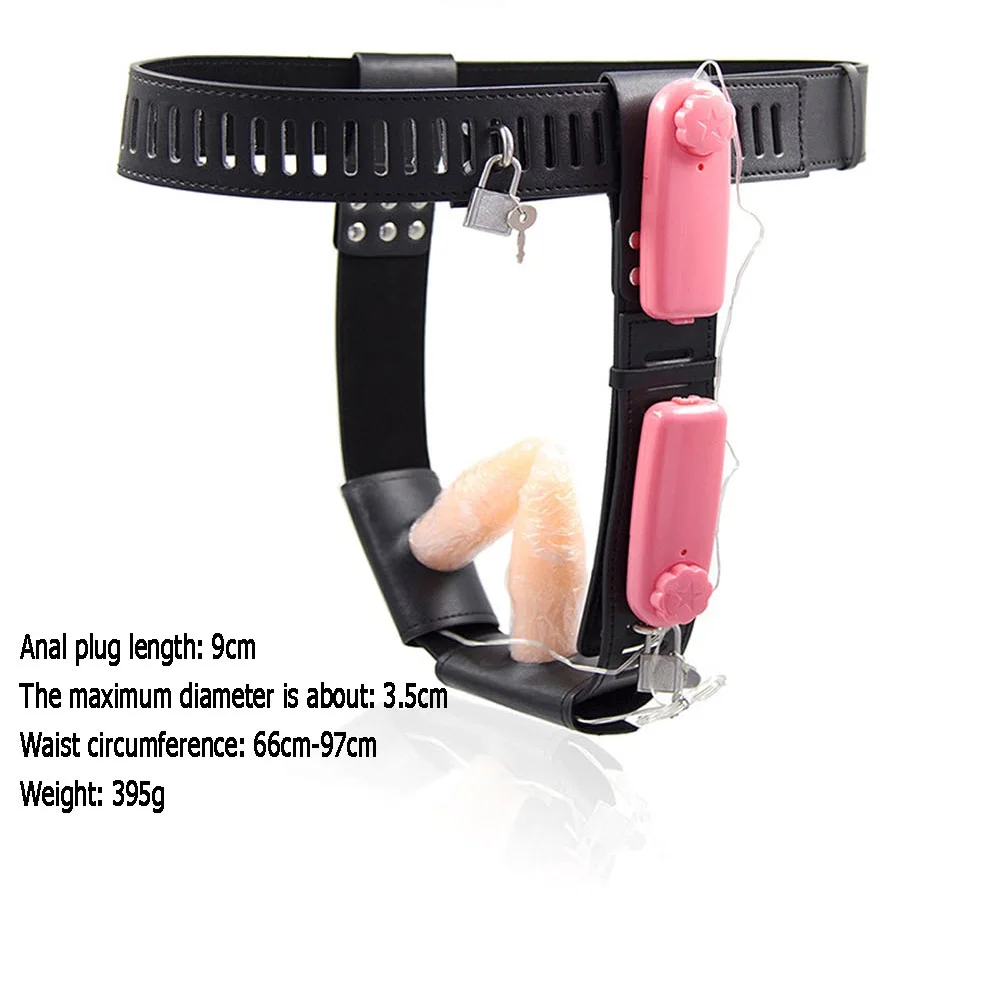 Женский ремень верности из искусственной кожи, женское нижнее белье, трусики с двойной анальной пробкой, фаллоимитатор, секс-игрушки