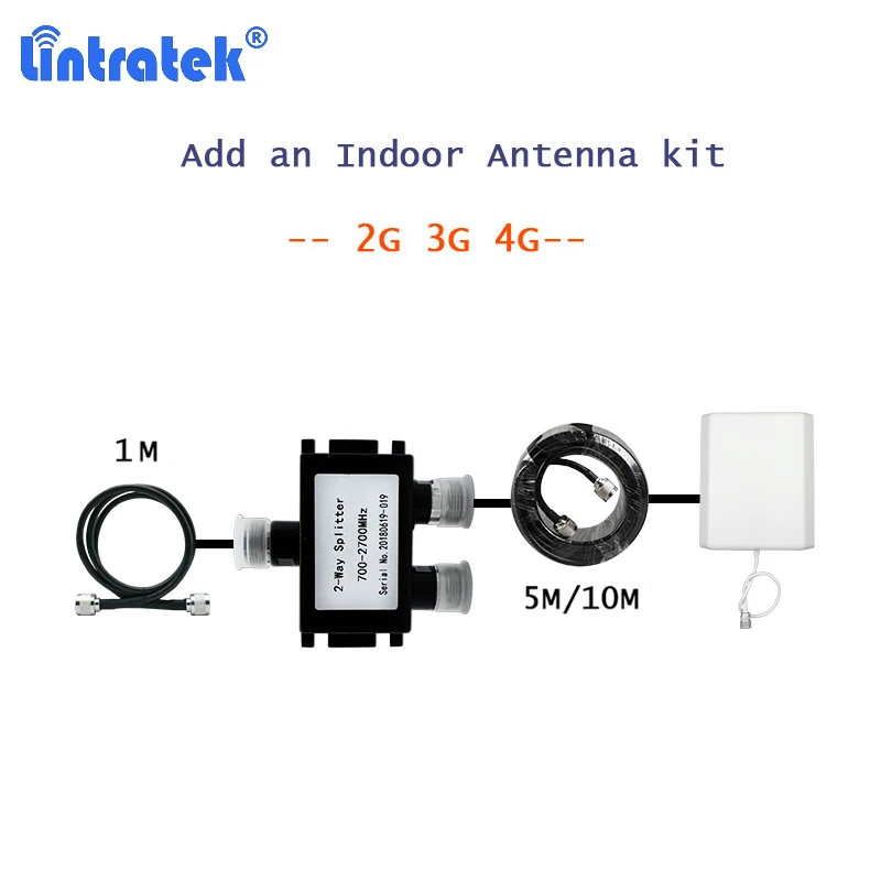 Внутренняя антенна Lintratek с дополнительной панелью 9 дБи + 2-сторонний сплиттер + коаксиальный черный кабель RG6 5D для усилителя сигнала сотового телефона 2g 3g 4g