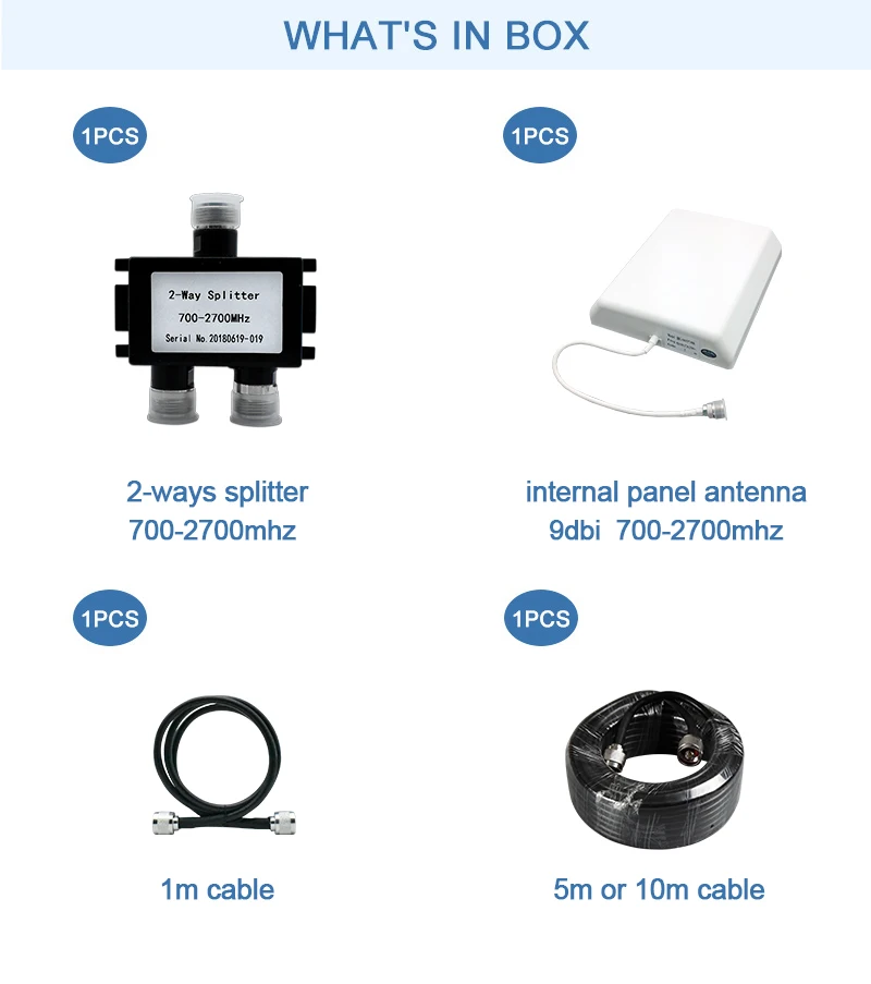 1*2 канальный разветвитель1 * Внутренняя панельная антенна1*1 м кабель1*5 м или 10 м кабель (2 варианта, только 1 шт.)