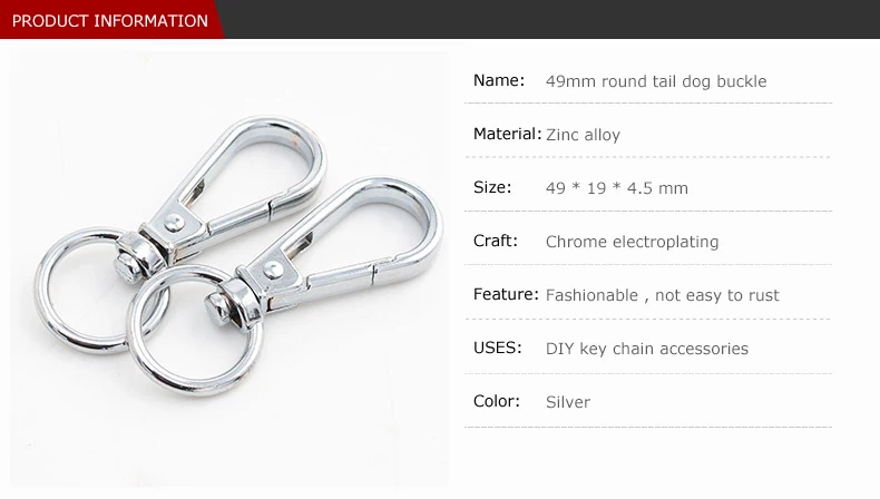 49*19 мм Серебряный металлический пружинный брелок DIY аксессуары для ювелирных изделий Рюкзак Пряжка поводок для домашних животных Крюк Пряжка Поворот на 360 градусов