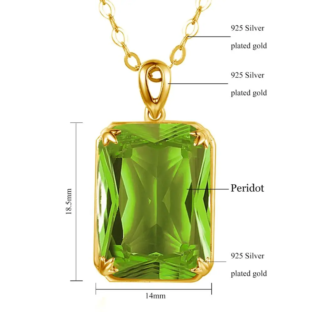 Бренд: SzjinaoТип камня: бусины из синтетического перидотаОсновной камень Размеры: прибл.(14*18,5 мм)Четкость камня: VVSЦвет камня: ПрозрачныйФорма камня: SaqureТип металла: 925 пробы серебро + желтое золотоЦвет металла: 18K желтое золотоУпаковка:1 * Серебряная полировальная ткань,1 * Изысканная Подарочная коробка,1 * перидот драгоценный камень кулонБез ожерелья
