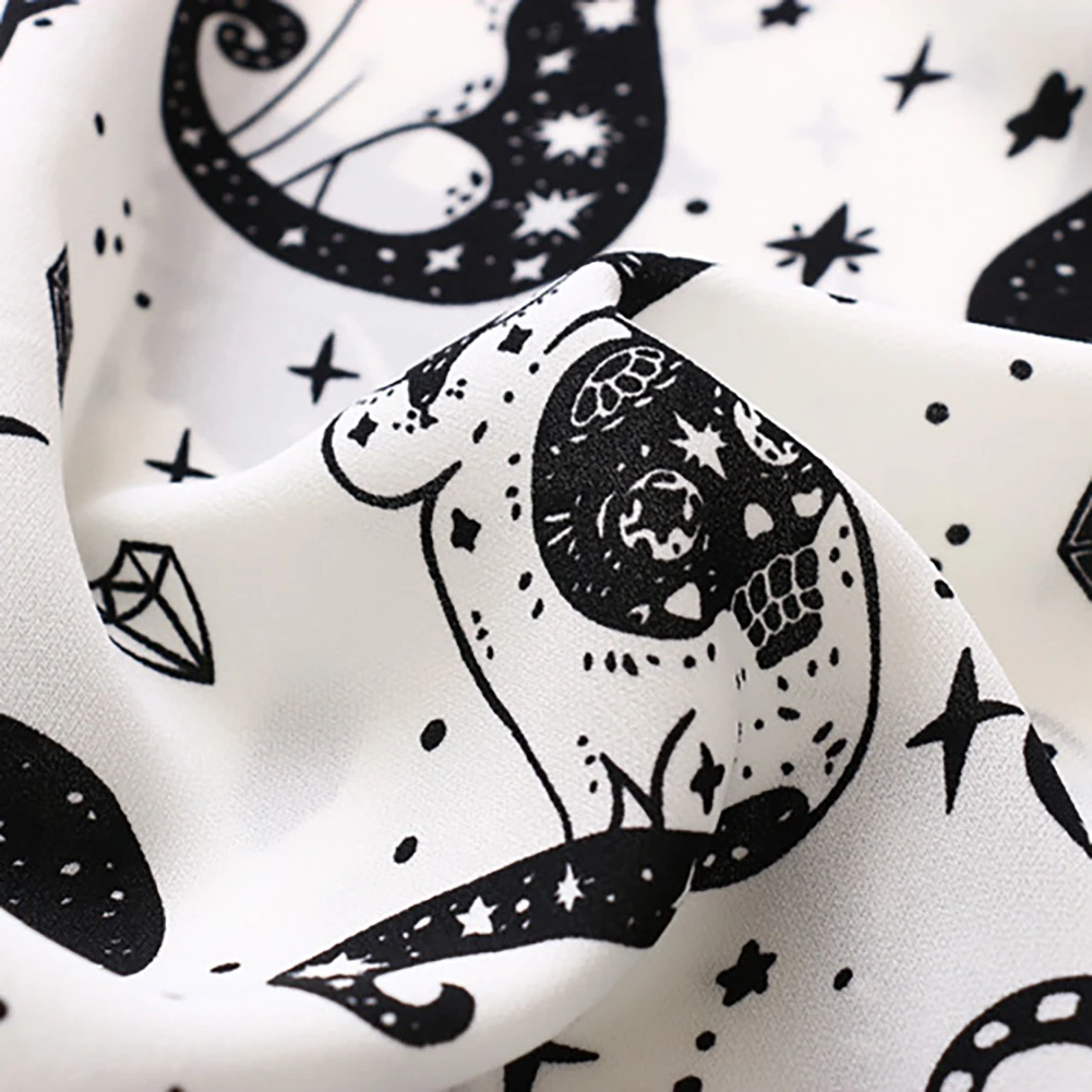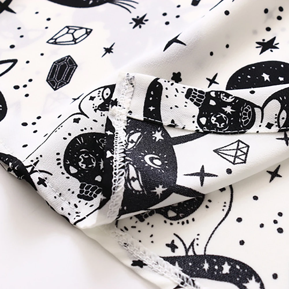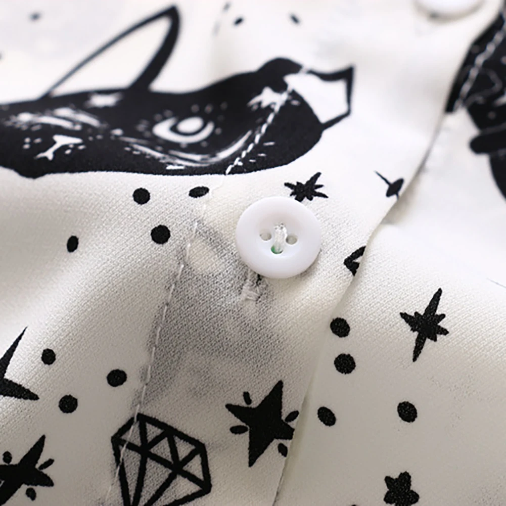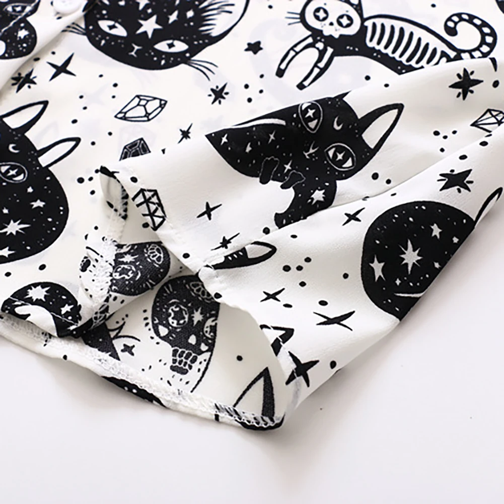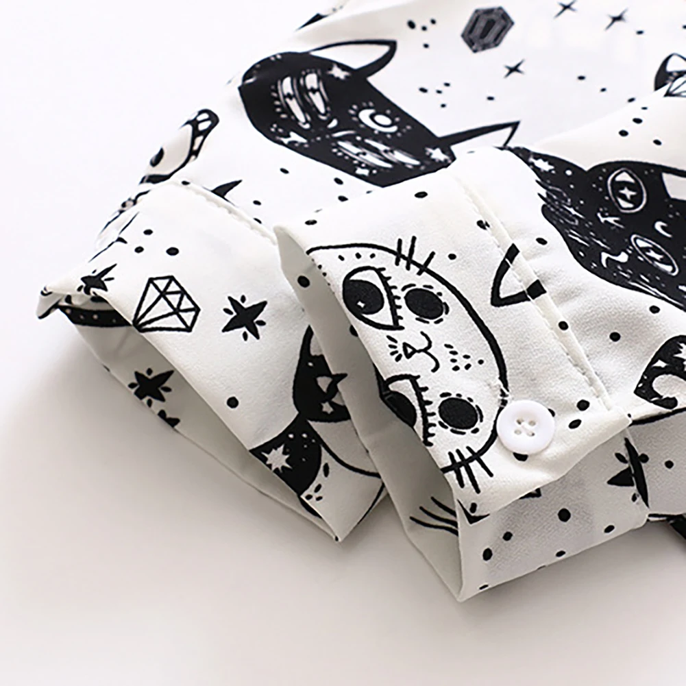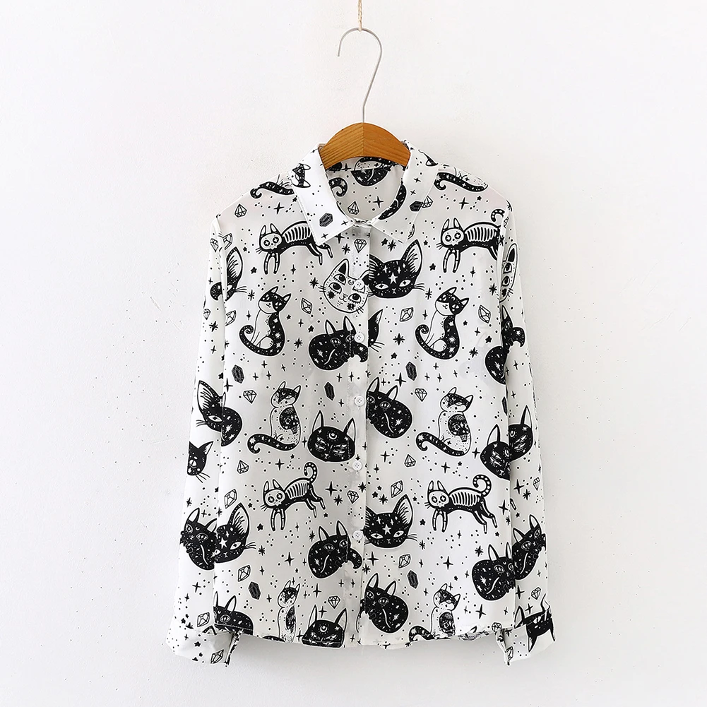 Женская офисная блузка, с принтом в виде кошек, с длинным рукавом и отложным воротником