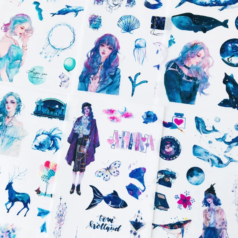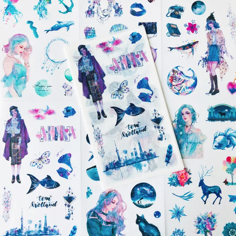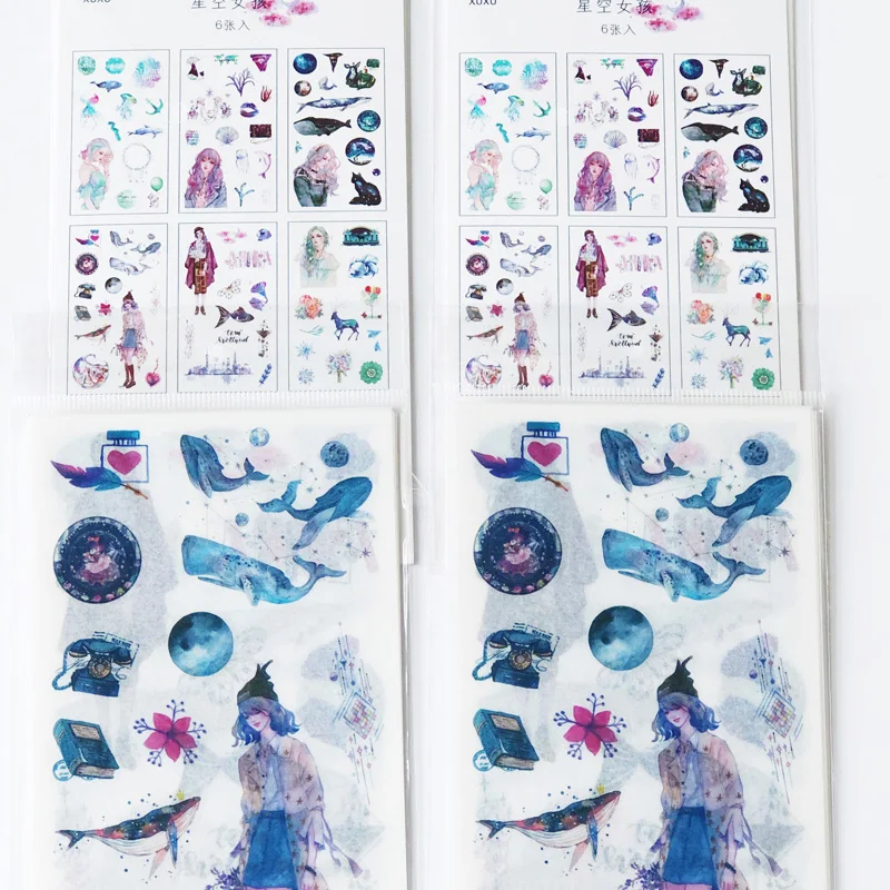 6 листовупаковка звездное небо девушки бумажные наклейки декоративные Сделай Сам пасты палочки этикетки