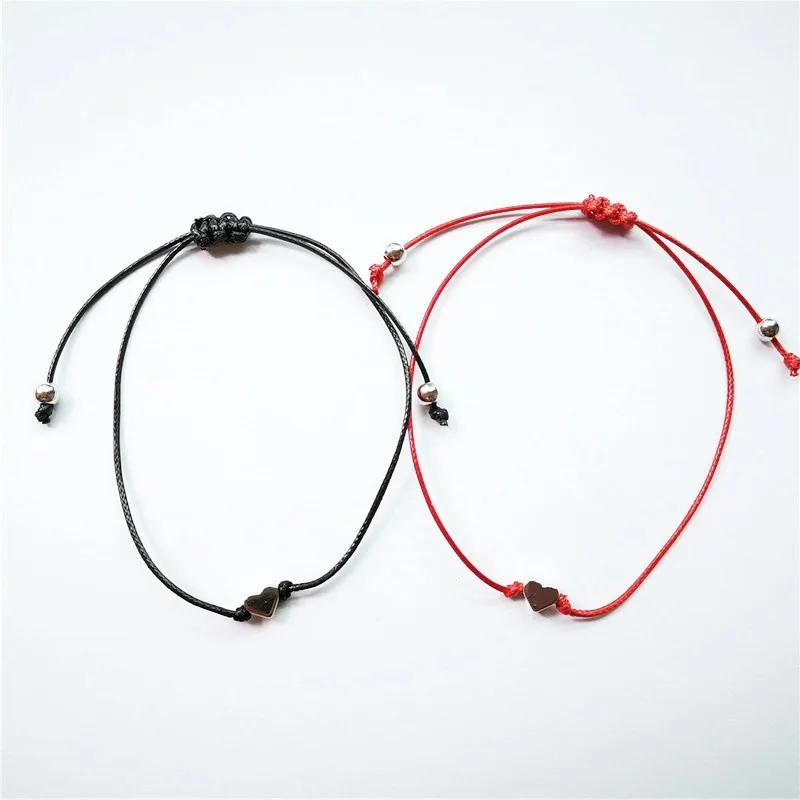 Пара браслетов обещаний для женщин и мужчин, красные, черные браслеты с подвесками в виде сердца на удачу, оптовая продажа, подарок на день Святого Валентина, оптовая продажа
