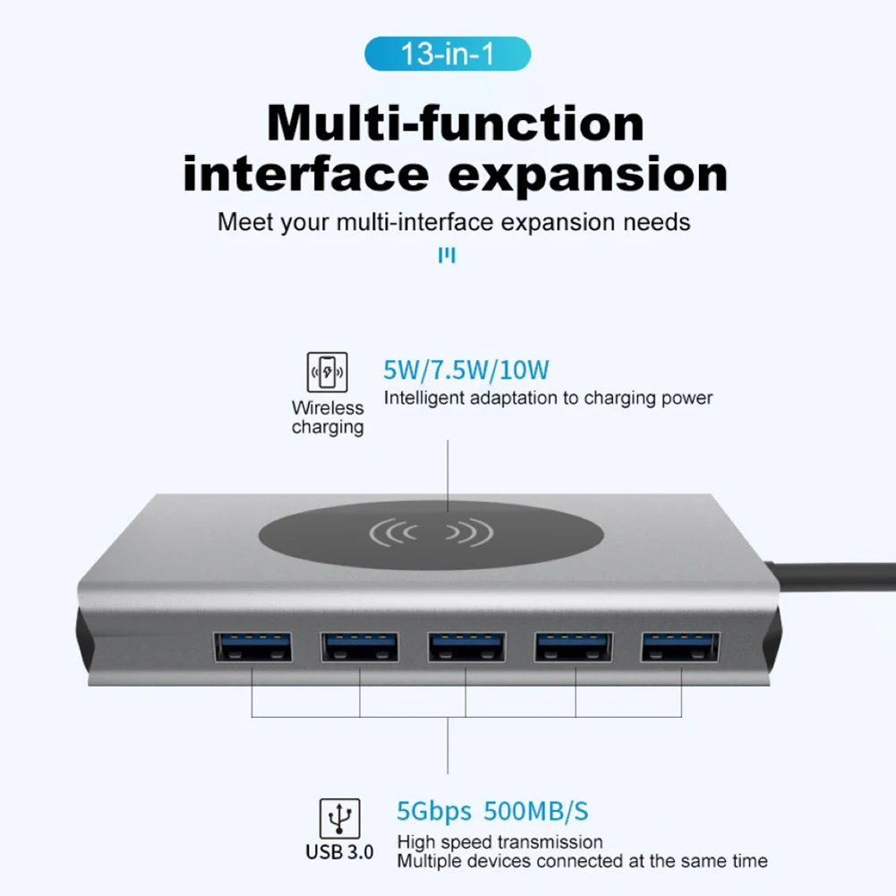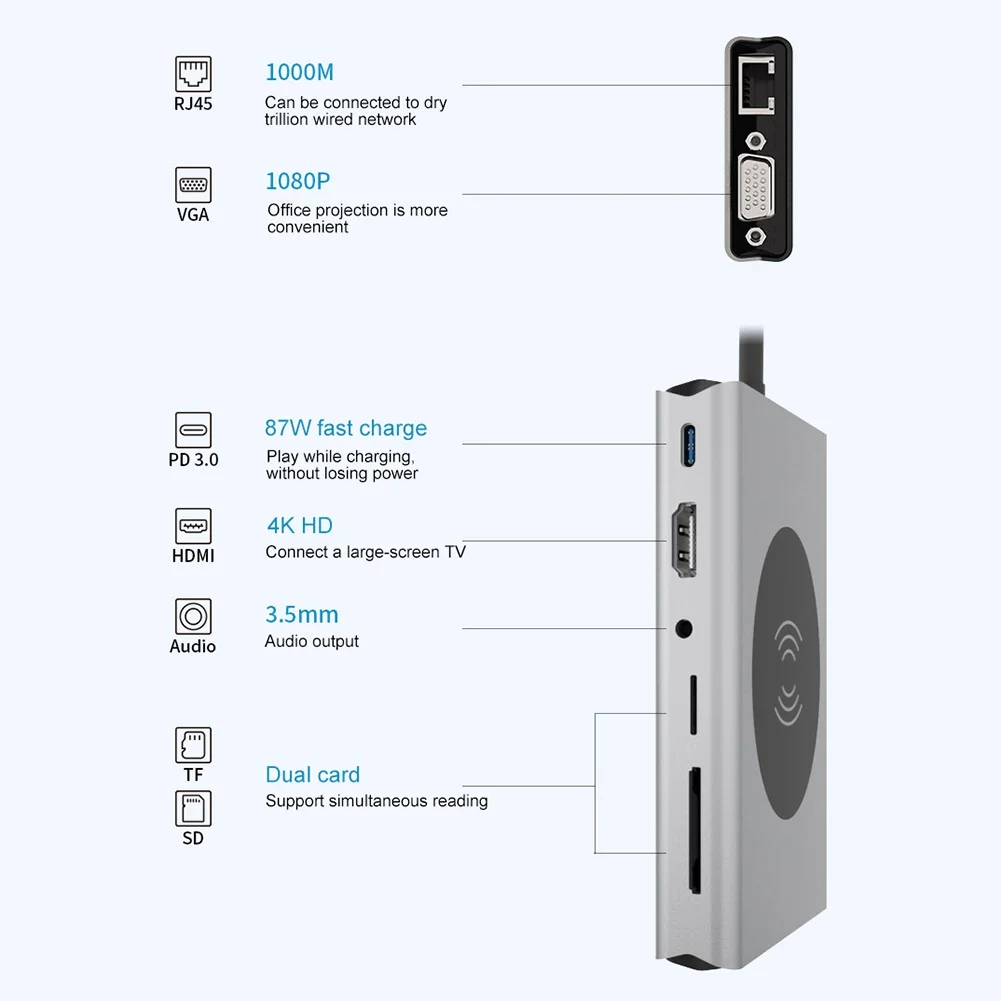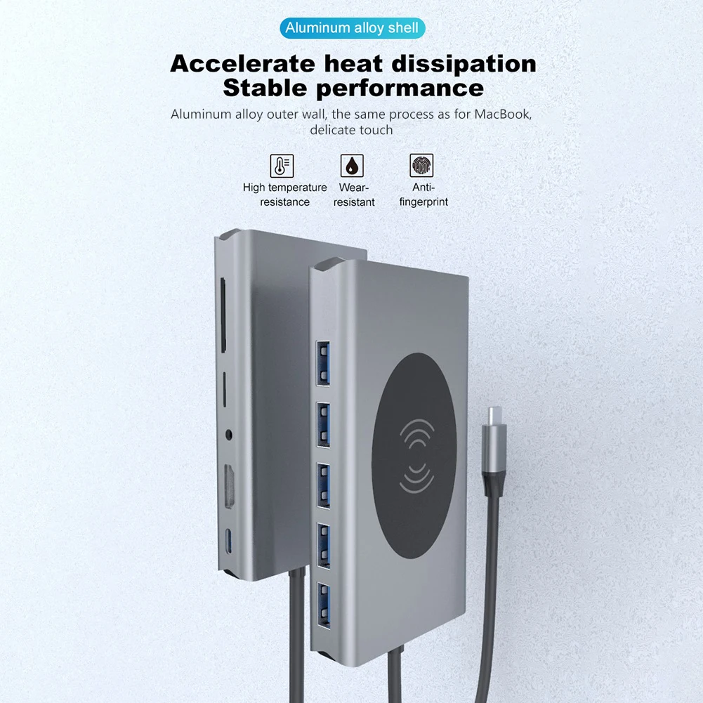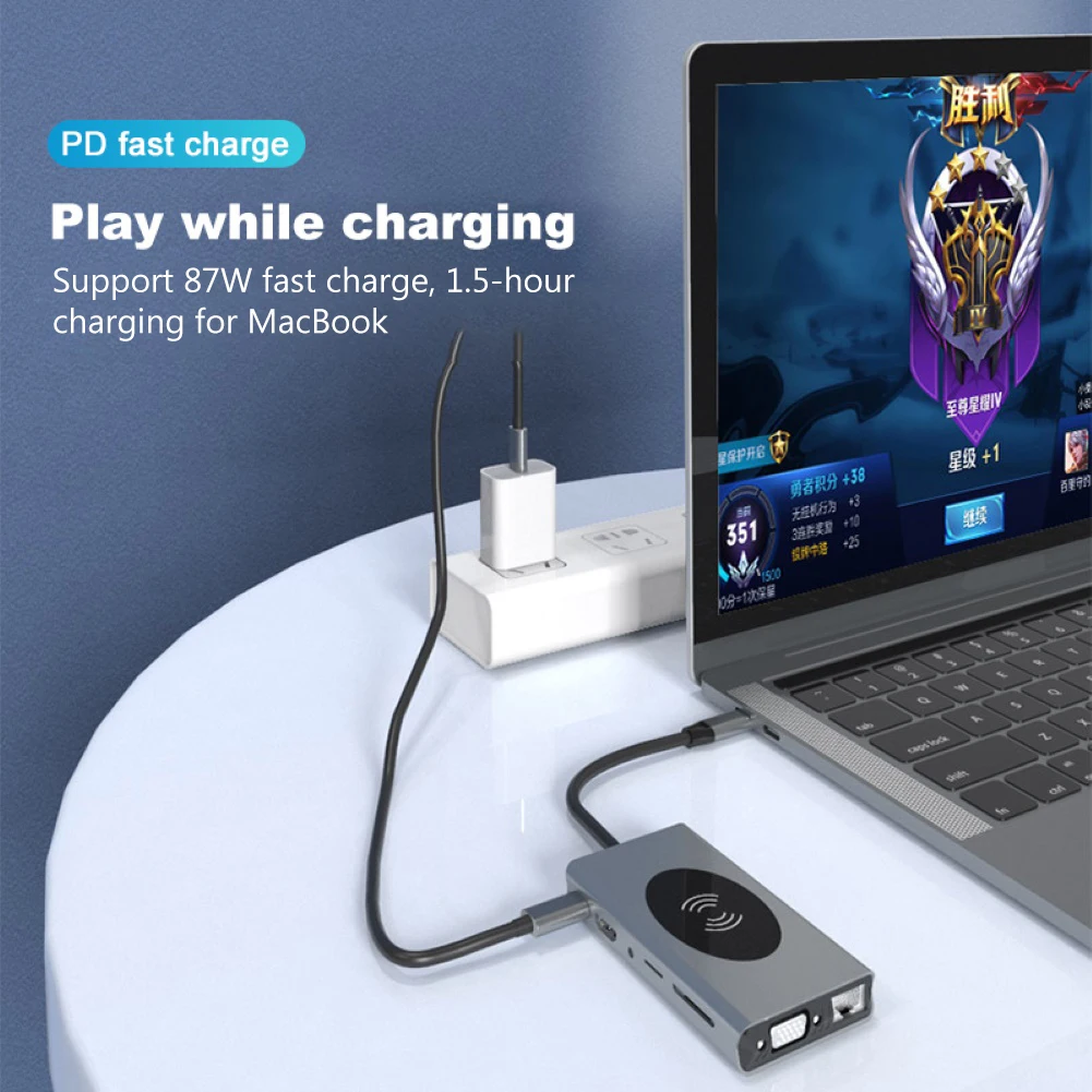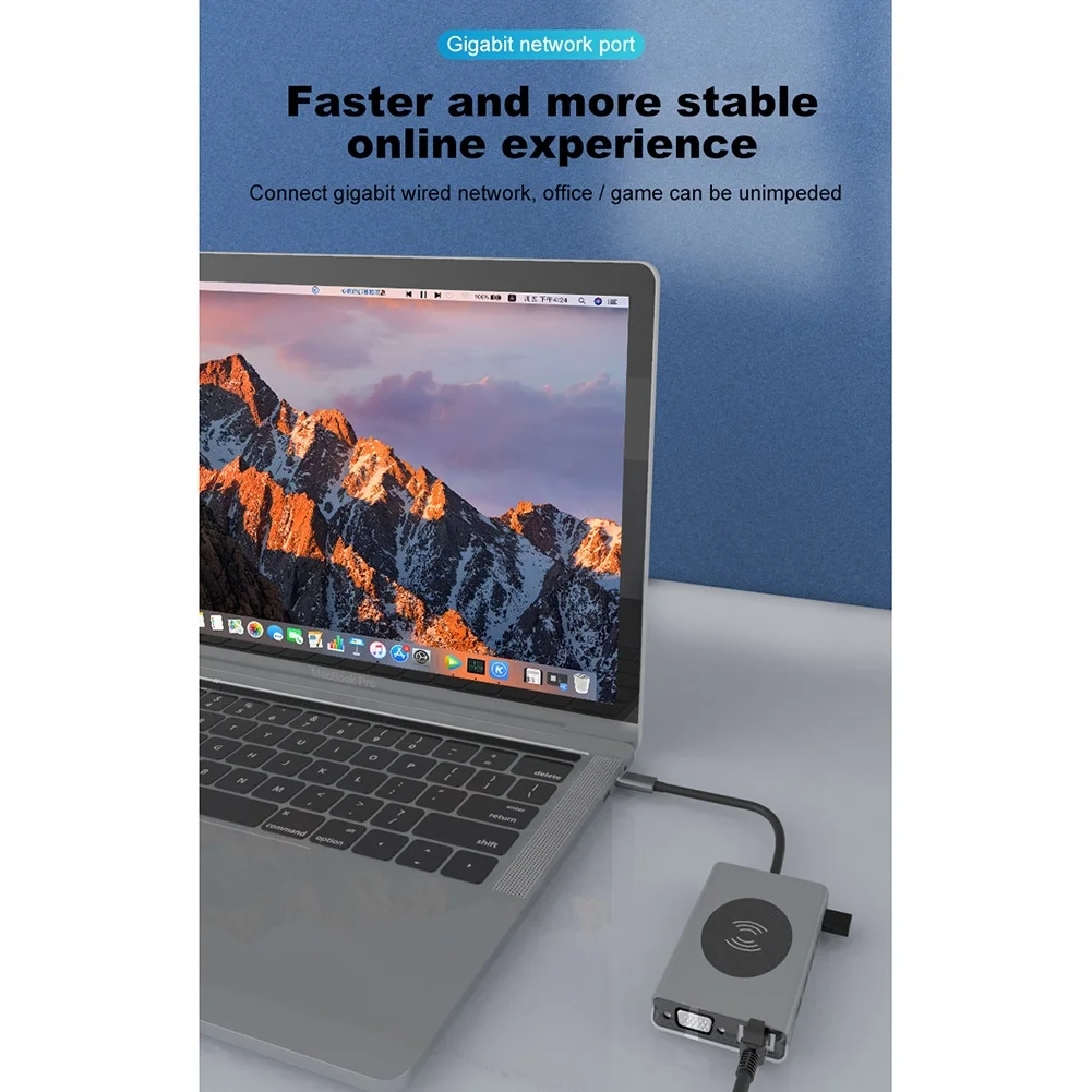 USB C концентратор USB док-станция для ноутбука PD VGA HDMI адаптер 5 USBC 3,0 концентратор Беспроводной заряда TF Card Reader Ethernet для Macbook Pro ноутбук
