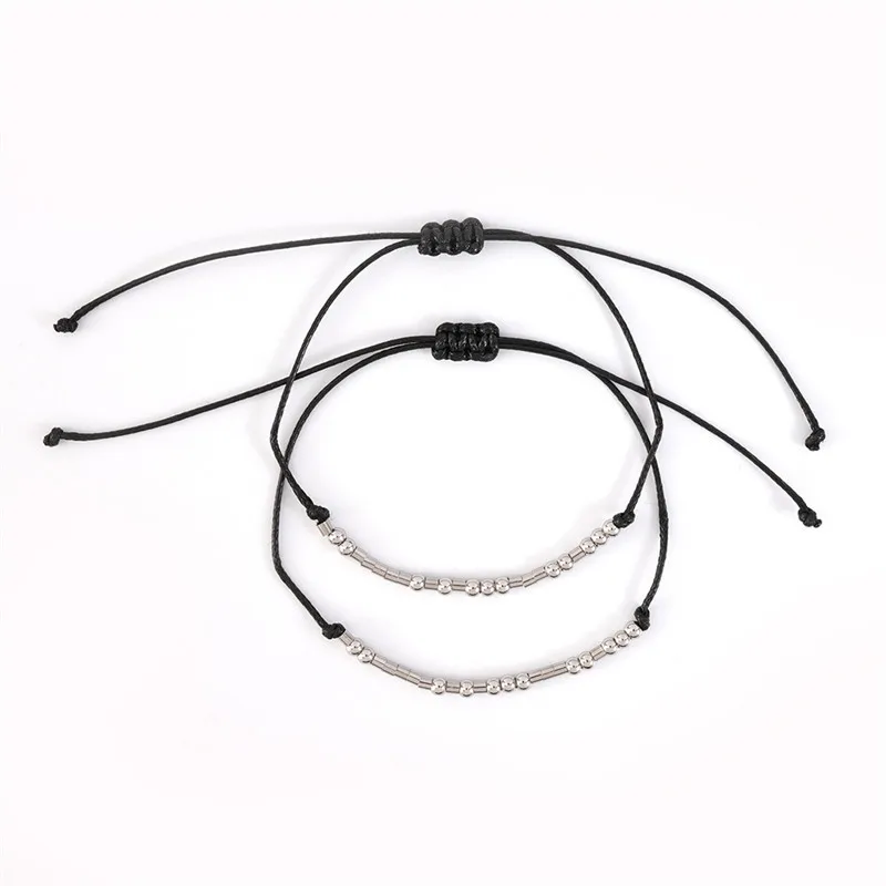 2 шт.компл. Регулируемый Морс кодовый браслет для женщин мужские креативные из нержавеющей стали с плетеным ремешком черный браслет-веревочка, ювелирное изделие для пары