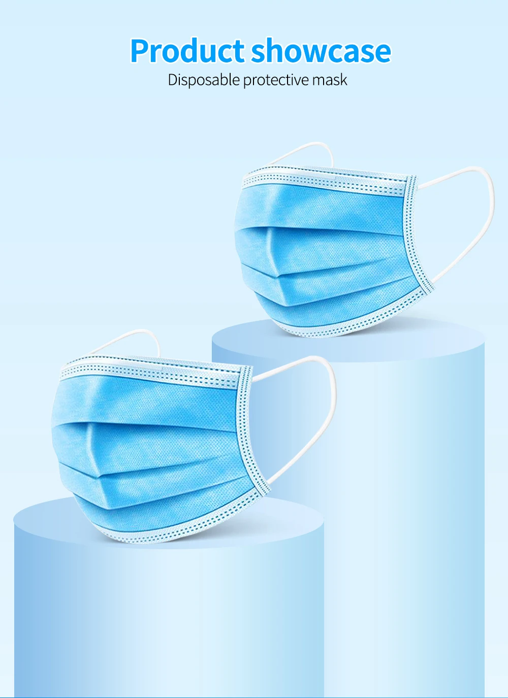 Маска одноразовая Защитная 3-слойная голубая для лица, 10-500 шт.