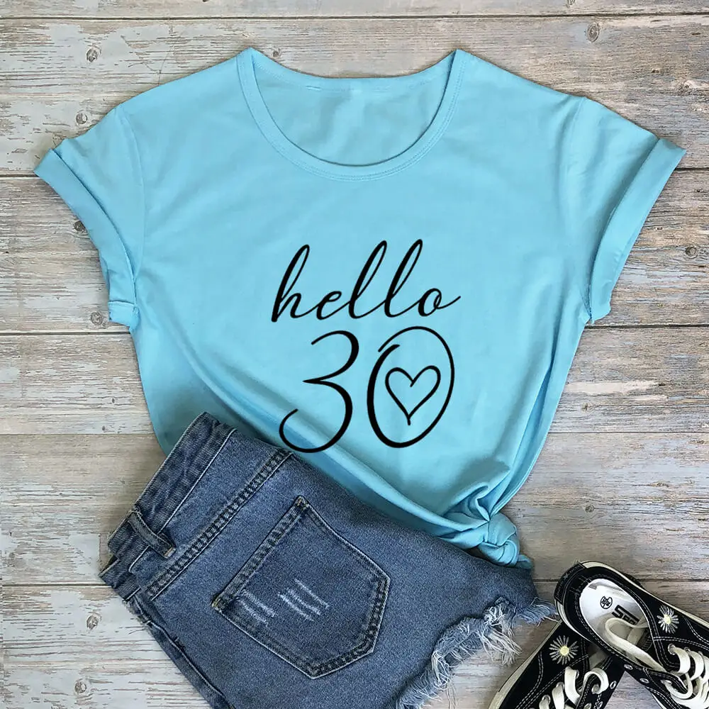 Забавная футболка из 100% хлопка с надписью Hello 30, для дня рождения 30, подарок для нее