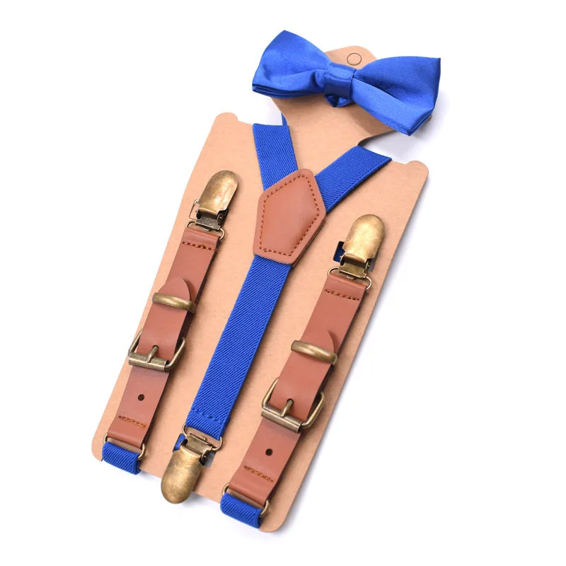 Из-за различных материалов подтяжек и галстука-бабочки возможна небольшая разница в цвете