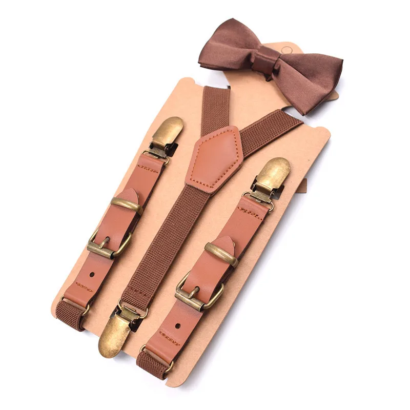 Детские винтажные подтяжки с галстуком-бабочкой, регулируемые подтяжки из искусственной кожи для мальчиков и девочек, детские подтяжки, брюки с застежкой, аксессуары для галстуков