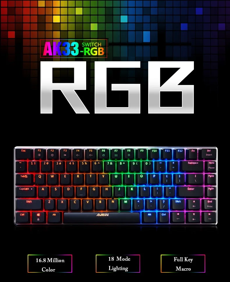 Клавиатура Ajazz AK33 Проводная игровая, механическая, 82 клавиши, холодный эргономичный дизайн со светодиодной подсветкой
