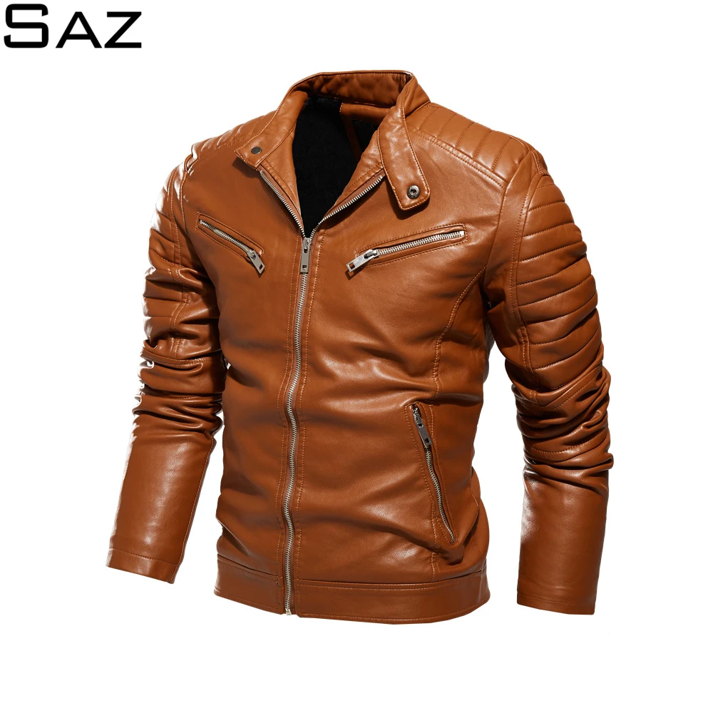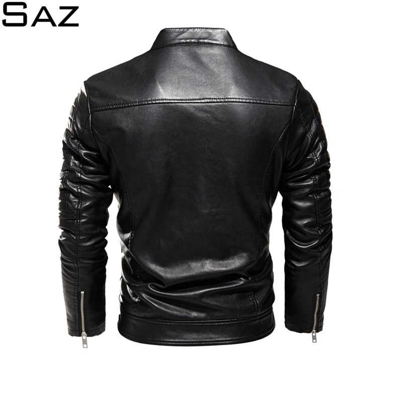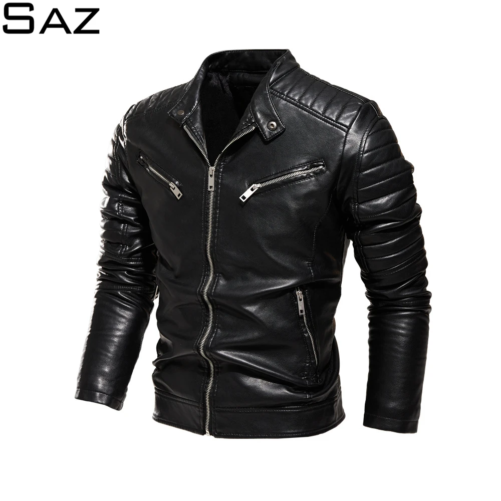 Мужская кожаная куртка в мотоциклетном стиле Saz, черная повседневная куртка в деловом стиле, Осень-зима 2021