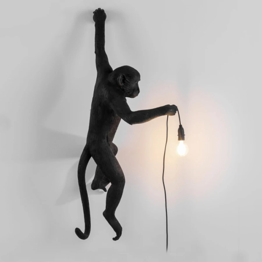 Полимерный настенный светильник в виде обезьяны, черная, белая, Зол...