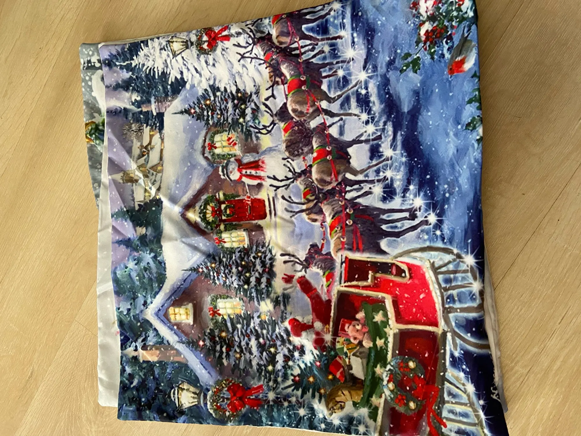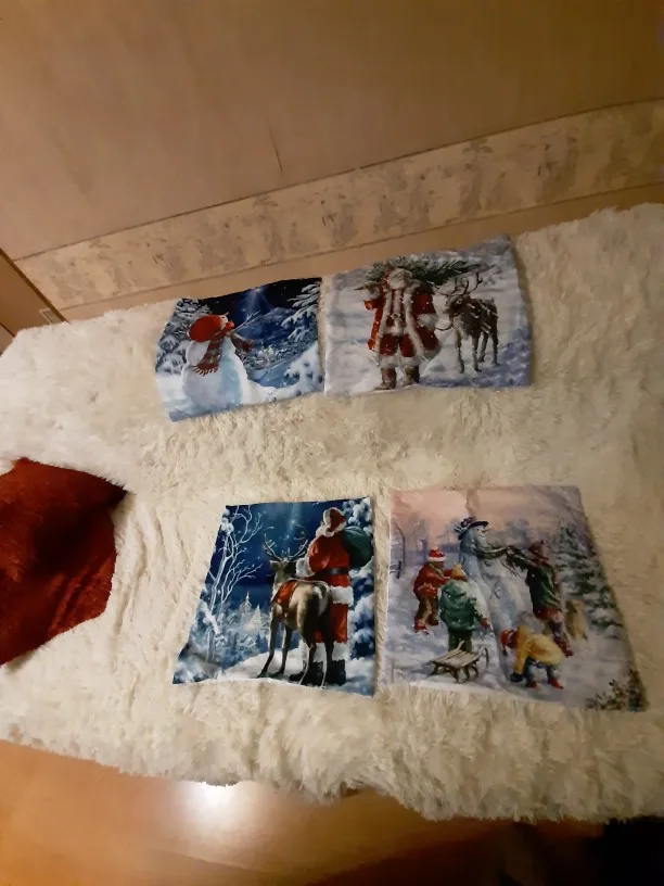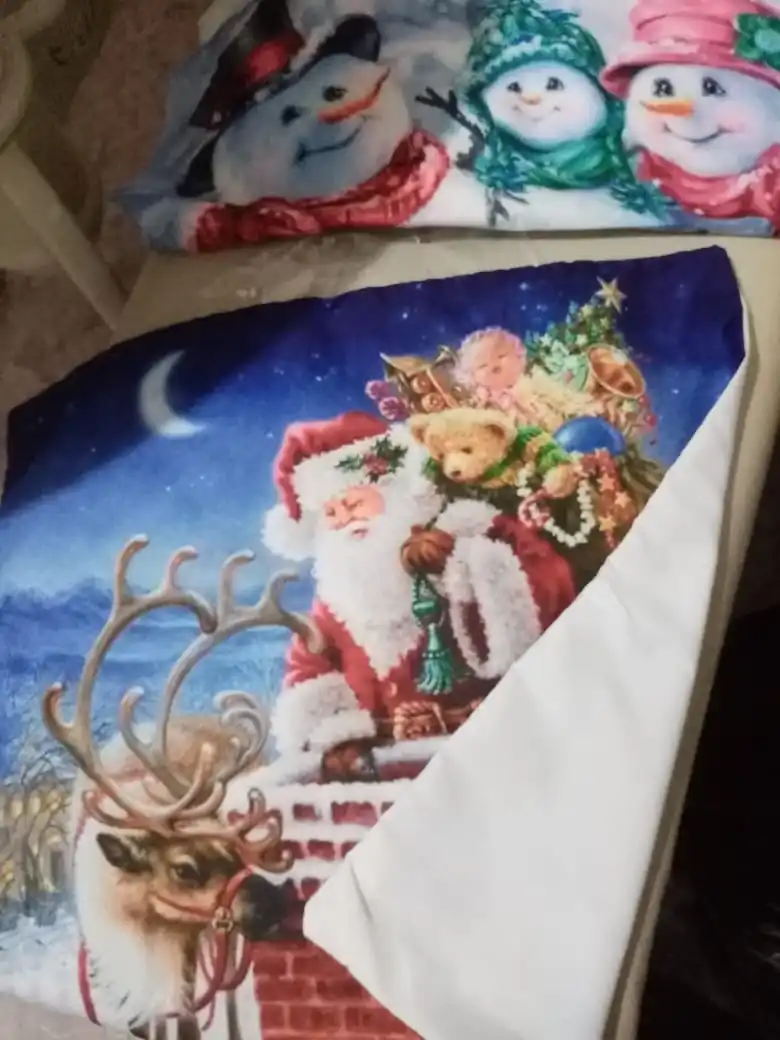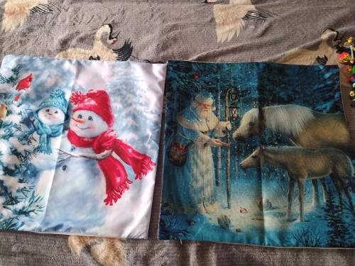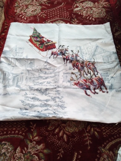 Очень оперативно продавец отправил товар,быстро получила,отслеживалась посылка. Материал не пахнет,сшито довольно аккуратно. На молнии,вторая сторона- белая.К сожалению,рисунок не такой четкий,как на рисунках. Особенно это заметно на крупном изображении Деда Мороза.Подавца и чехлы рекомендую. Приятно получить посылку вовремя и украсить свой дом к празднику.