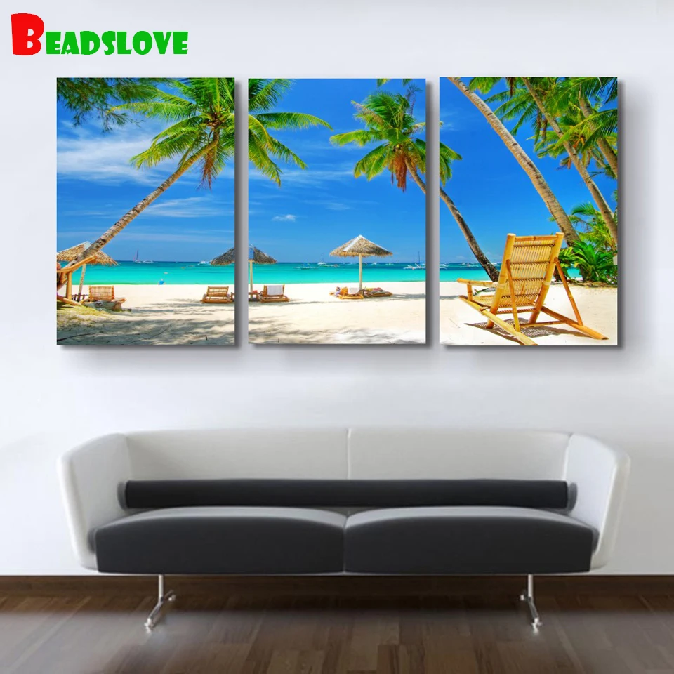 Триптих 5d алмазная живопись пляжная полная 3 штуки тропический морской пейзаж алмазная вышивка мозаика стразы картины искусство дома