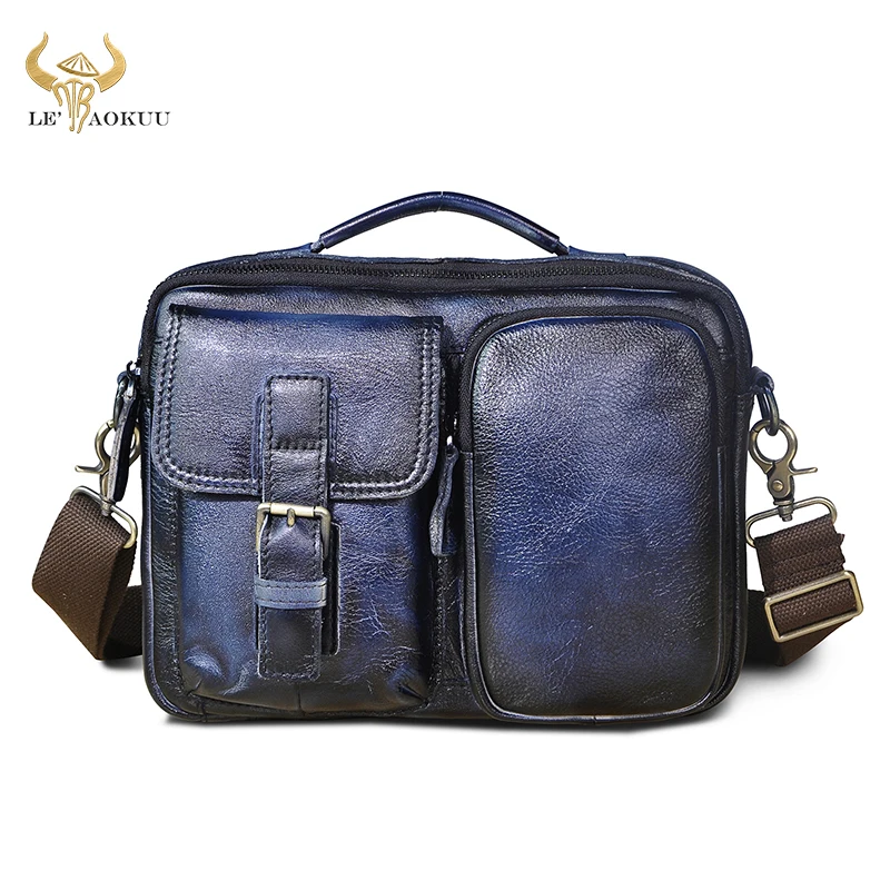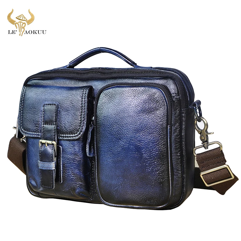 Мужская сумка-мессенджер из натуральной кожи, модная синяя сумка через плечо из воловьей кожи, 9 дюймов, сумка-тоут, сумка-портфель, 036
