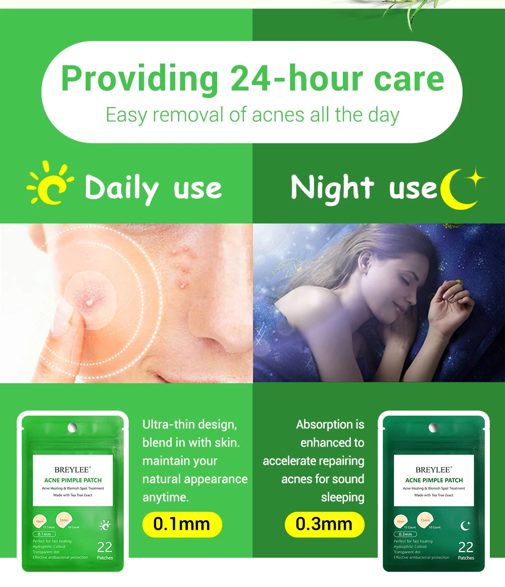 Натуральные ингредиенты для удаления акнеТочное чайное деревоЭто может уменьшить воспаление, отрегулировать секрецию жира, снять кожу и ускорить заживление ранОбеспечивает 24-часовой уходЛегкое удаление acnes весь деньУльтратонкий дизайн, сочетающийся с кожей. Сохраняйте свой естественный внешний вид в любое время. Поглощение усиливается, чтобы ускорить ремонт acnes для звукового сна