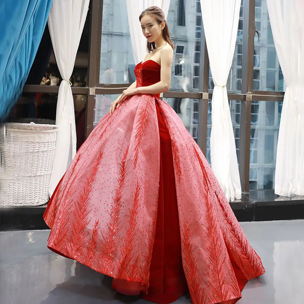 2021 тюлевые бархатные платья с бусинами для выпускного вечера для женщин, бальные платья, Длинные вечерние платья для девочек, Роскошная красная одежда для вечеринки LD21
