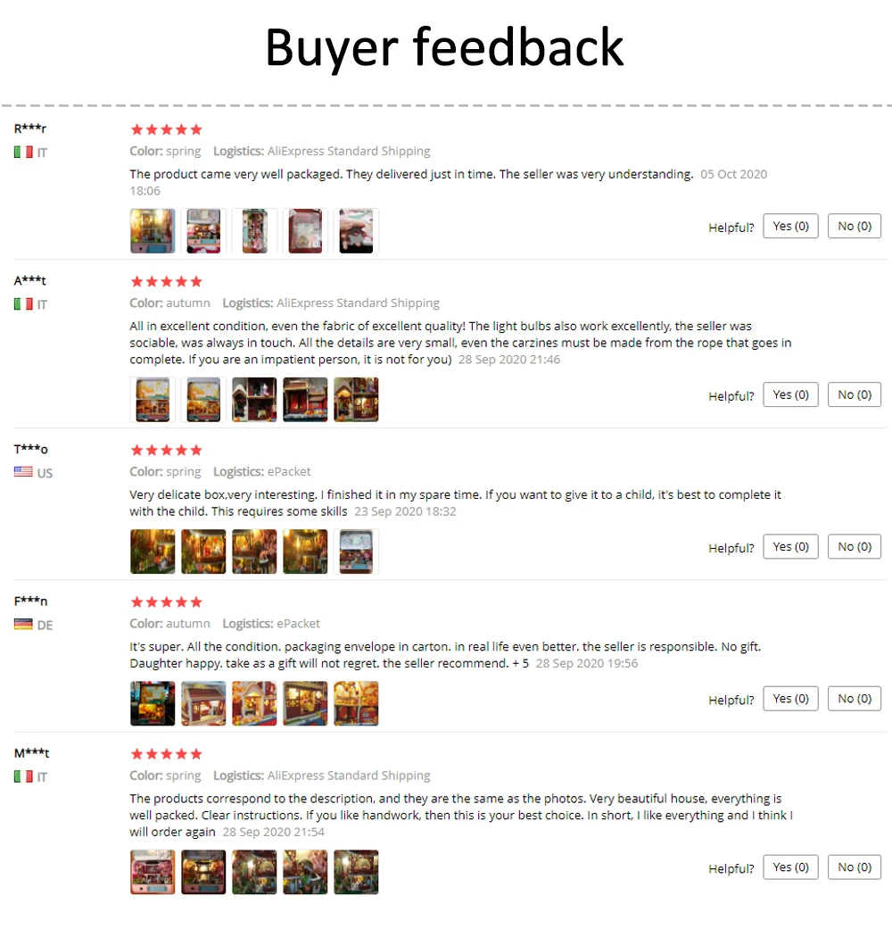 Заказ пришел быстро даже с учетом новогодних праздников. Пришло в коробке и воздушной пленке. Я только начала сборку, но набор просто очарователен. Детали в жизни еще миниатюрней и красивее. Инструкция на китайском, но в картинках и очень детальна, все понятно и без перевода. Я очарована этим набором. Это отличное занятие для того чтобы оставаться дома. Продавец очень вежливый и доброжелательный. Теперь мне хочется собрать всю коллекцию. Очень рекомендую.