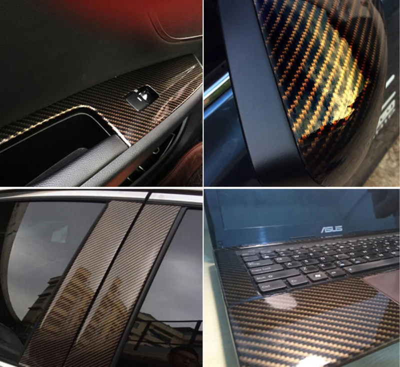 Глянцевая 2D виниловая пленка из углеродного волокна DIY Стайлинг Черный серебристый золотой углеродный Автомобильная фольговая пленка с выпуском пузырьков воздуха