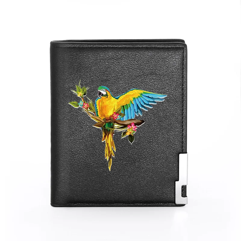 Кошелек мужской из искусственной кожи, Модный бумажник двойного сложения с принтом птицы, попугая, кредитница, короткий клатч