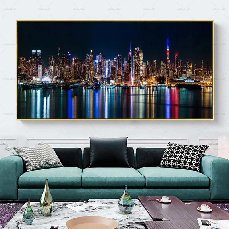 Городской Ночной Нью-Йорк холст печать картина современного искусства настенное искусство для гостиной плакат и печать без рамки