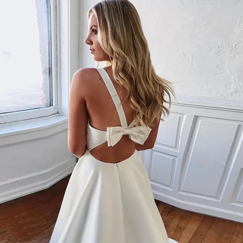 Женское атласное свадебное платье It's yiiya, белое платье с бантом на лето 2019