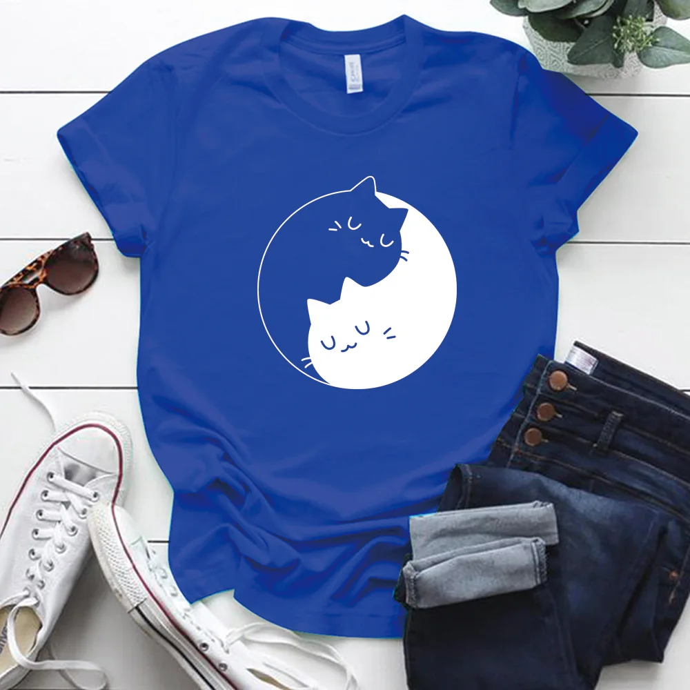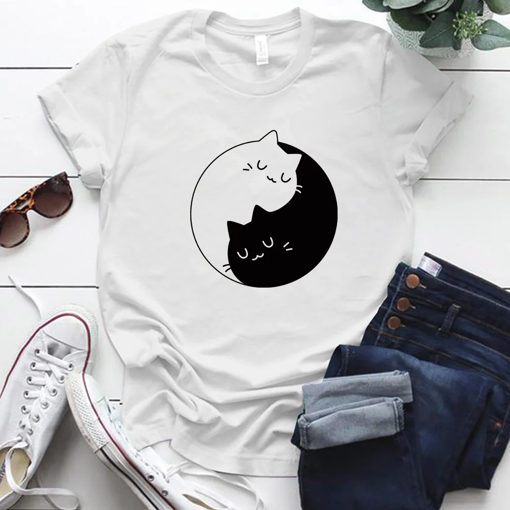 S-5xl, большие размеры, Yin Yang Cat, футболка большого размера с принтом для женщин, летняя одежда, Топы Harajuku, женские футболки с круглым вырезом, Ropa De Mujer