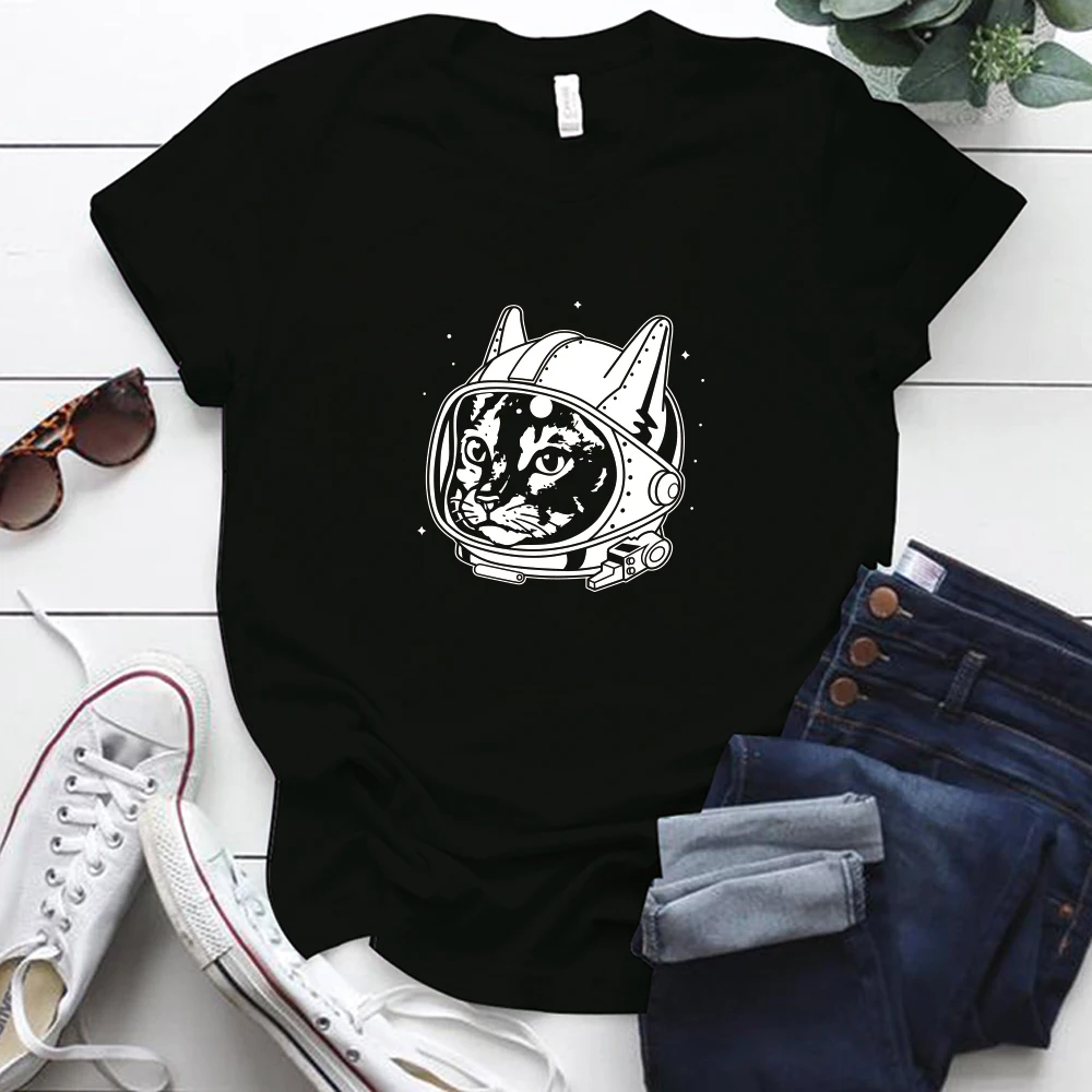 Большие размеры S-5XL, забавные женские футболки с космическим принтом кота, Летняя Повседневная Свободная футболка унисекс с круглым вырезом, топы для девочек, футболки