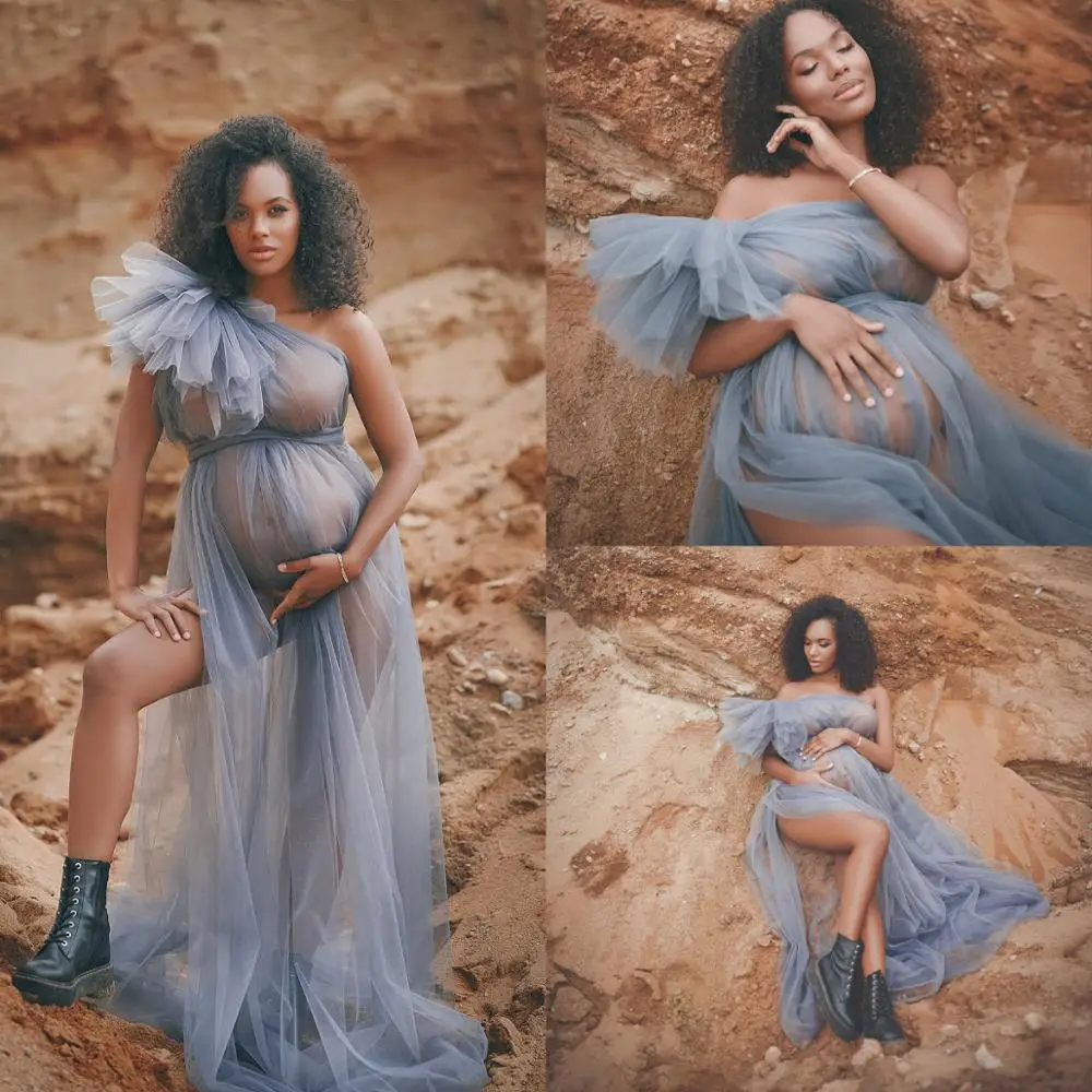 Серые платья для беременных на одно плечо платье для беременных для фотосессии будуарное белье тюлевый халат ночная рубашка Babydoll Robe