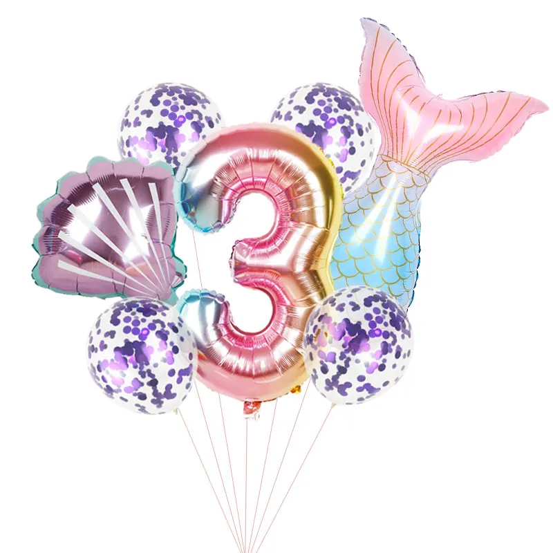 1 комплект, Русалка Ариэль, мультфильм, принцесса, фольга, воздушные шары, 32 дюйма, номер, для маленьких девочек, вечерние украшения на день рождения, детский игрушечный детский душ