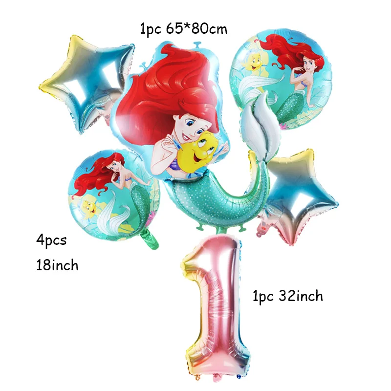 Фольгированные шары в виде Русалочки Ариэль, Мультяшные шарики принцессы, 32 дюйма, украшения для маленьких девочек на день рождения, детский игрушечный детский душ, 1 комплект