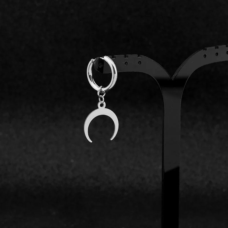 Серьги-клипсы с подвеской в виде Луны для женщин и мужчин, панковские серьги-гвоздики из нержавеющей стали, гранж, городской рэпер, вечерняя бижутерия