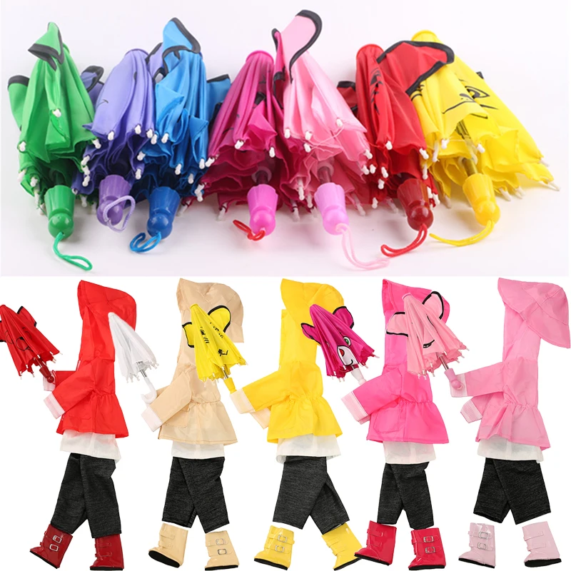 6 стилей костюмов для плащей, Одежда для кукол, милые зонтики с ушками для 18 дюймовых американских кукол и 43 см новорожденных, наше поколение,