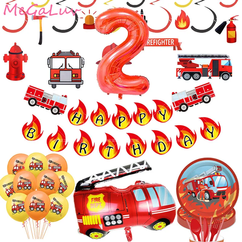 Пожарная машина День рождения украшение Баннер баллоны посуда Пожарный детский душ 2th3th 4th день рождения товары
