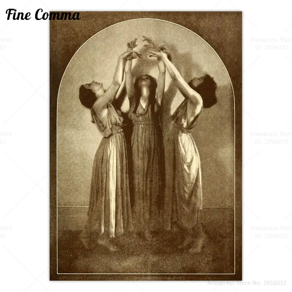 Three Witches Vintage Poster Anqitue Wall Art Canvas Print Women Dancing Wicca Pagan Sorceress Priestess Coven Witchcraft Seance