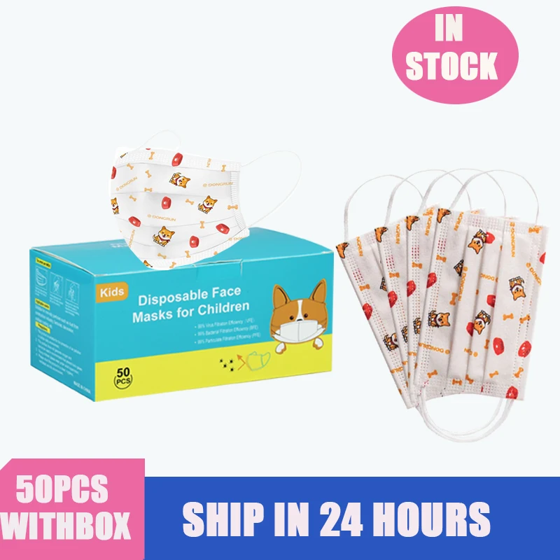 50 шт., детские одноразовые маски для лица, 3 слоя, противопылевые ...