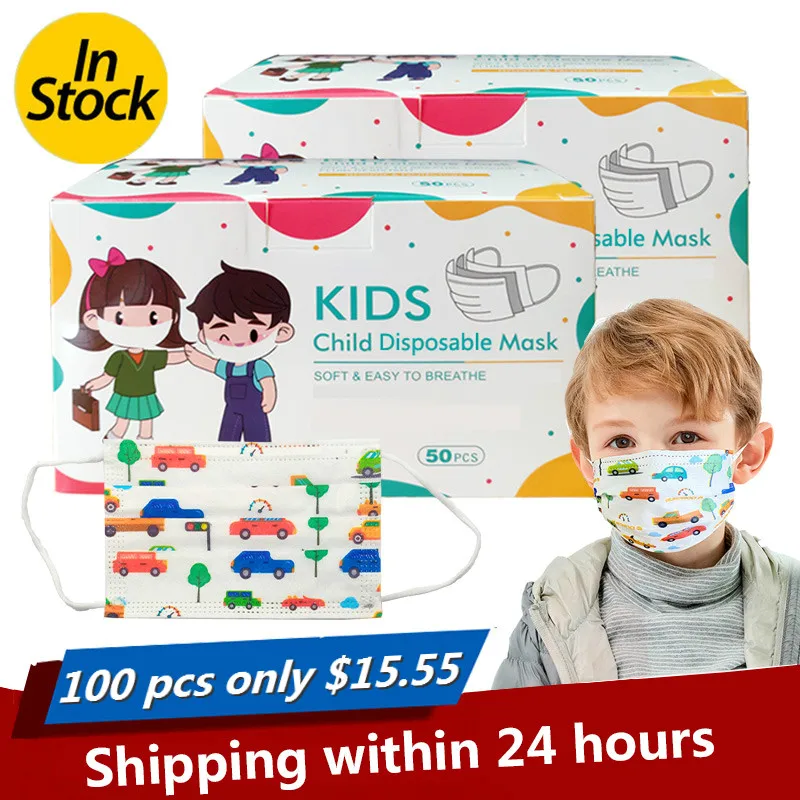 50 шт., детская трехслойная маска для лица, одноразовая маска для р...