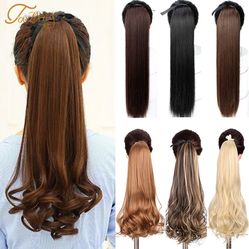 Длинный кудрявый Синтетический хвост TALANG 22 дюйма, накладной хвост с запахом на заколке, удлинитель конского хвоста, коричневый, черный, Натуральные Искусственные волосы